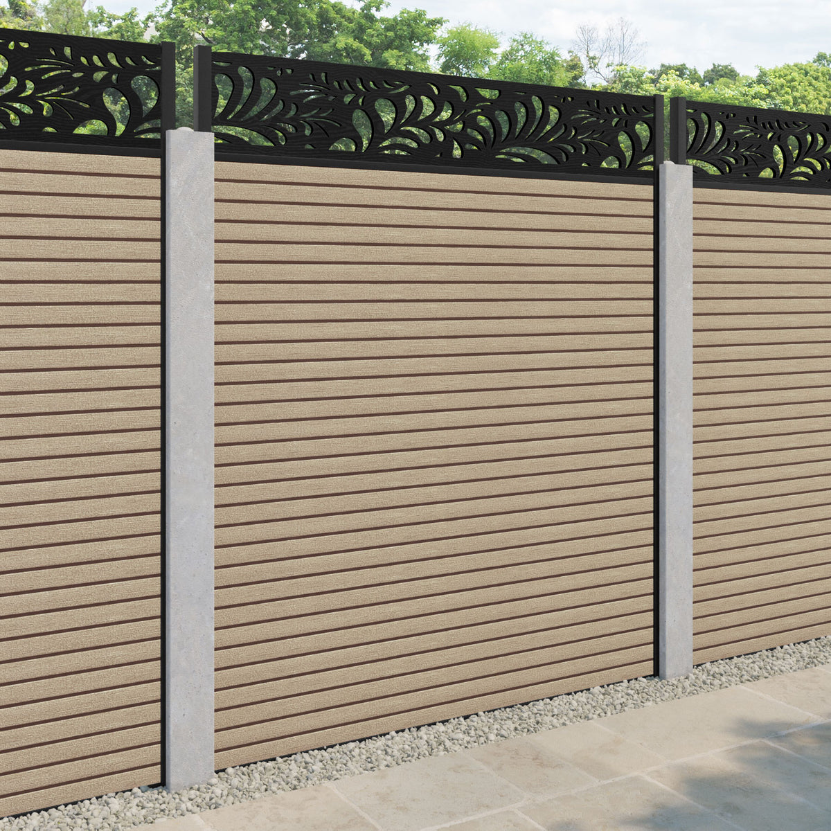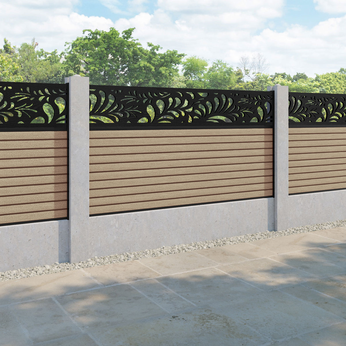 Hudson Petal Fence Panel Light Oak - for existing concrete posts
