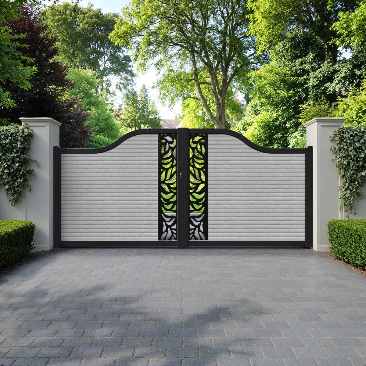 Hudson Plume Curved Top Driveway Gate Light Grey - Middle Screen