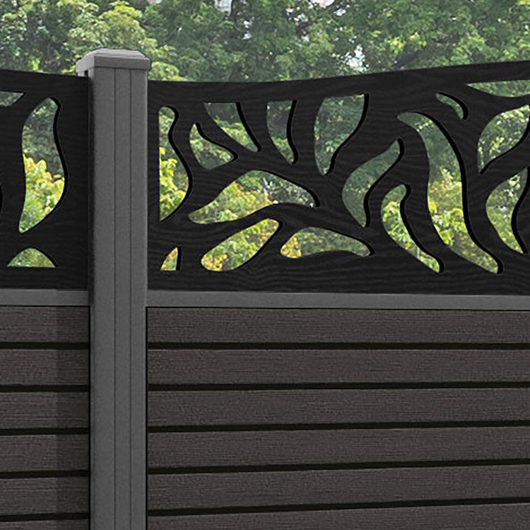 Hudson Plume Curved Top Fence Panel Dark Oak - with our aluminium posts