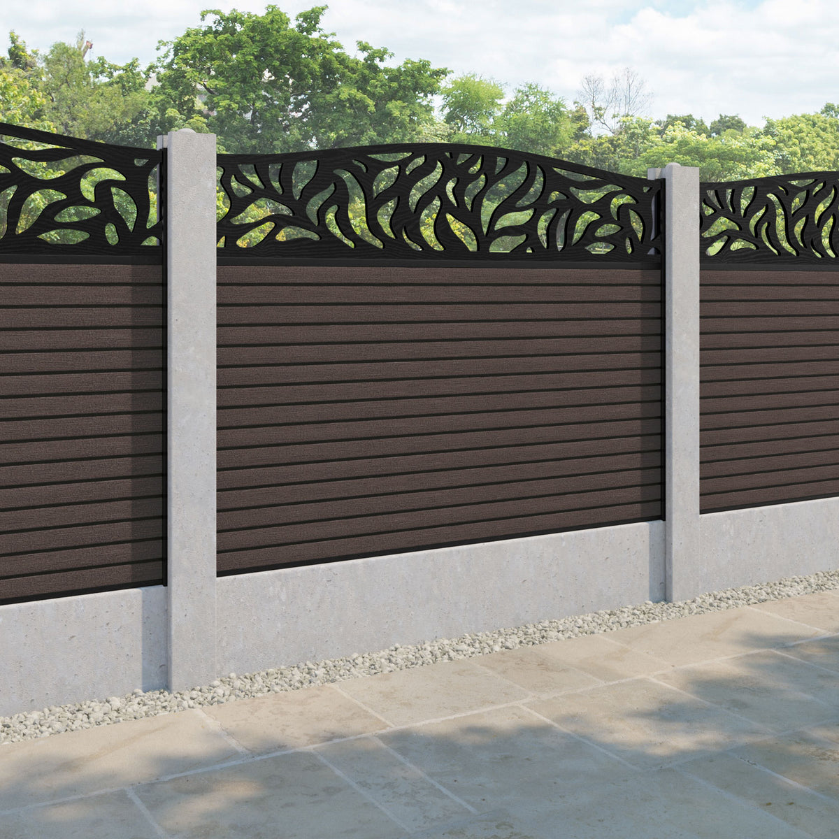 Hudson Plume Curved Top Fence Panel Mid Brown - for existing concrete posts
