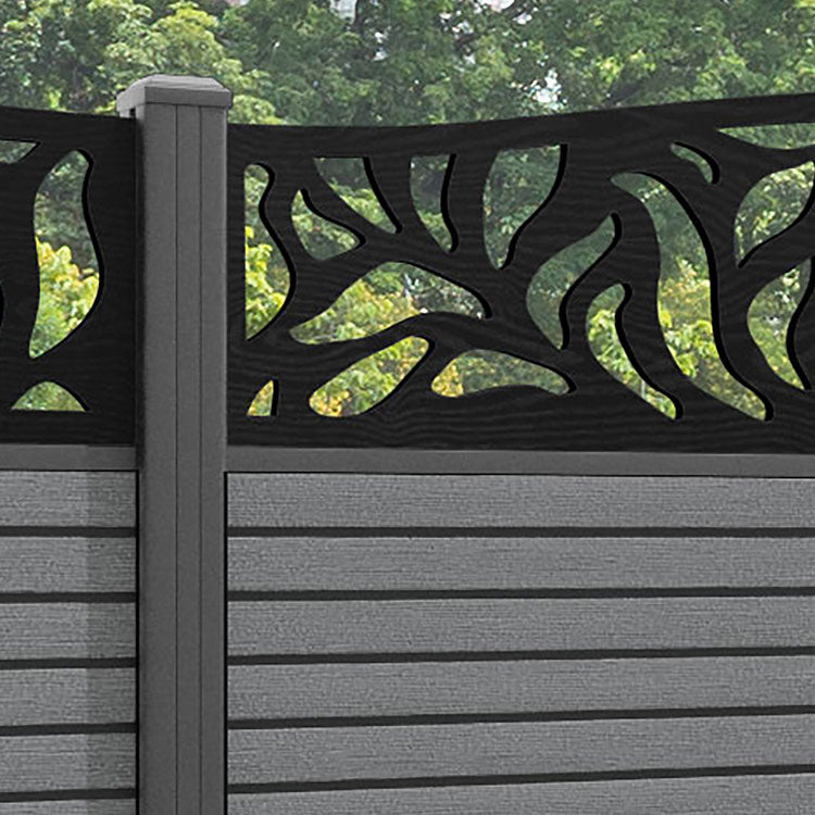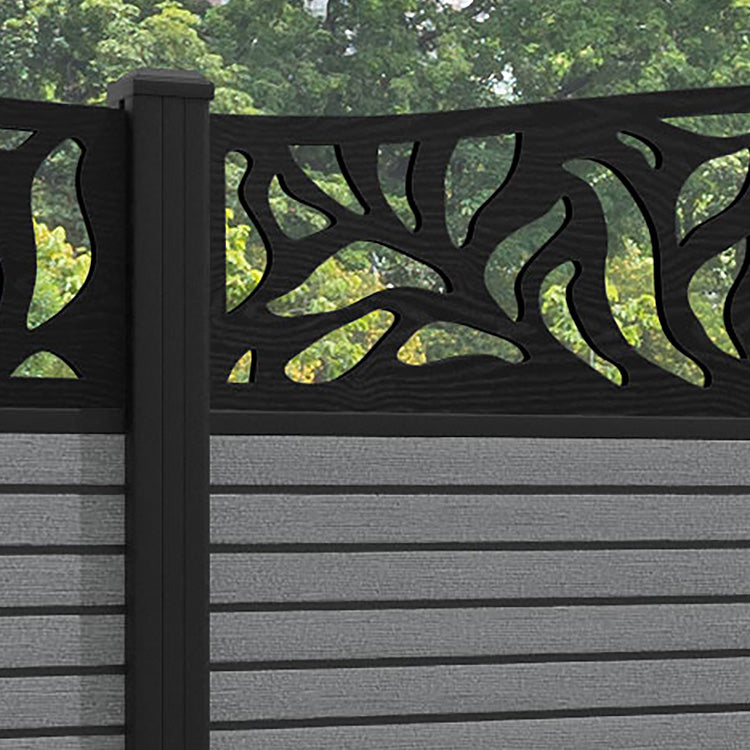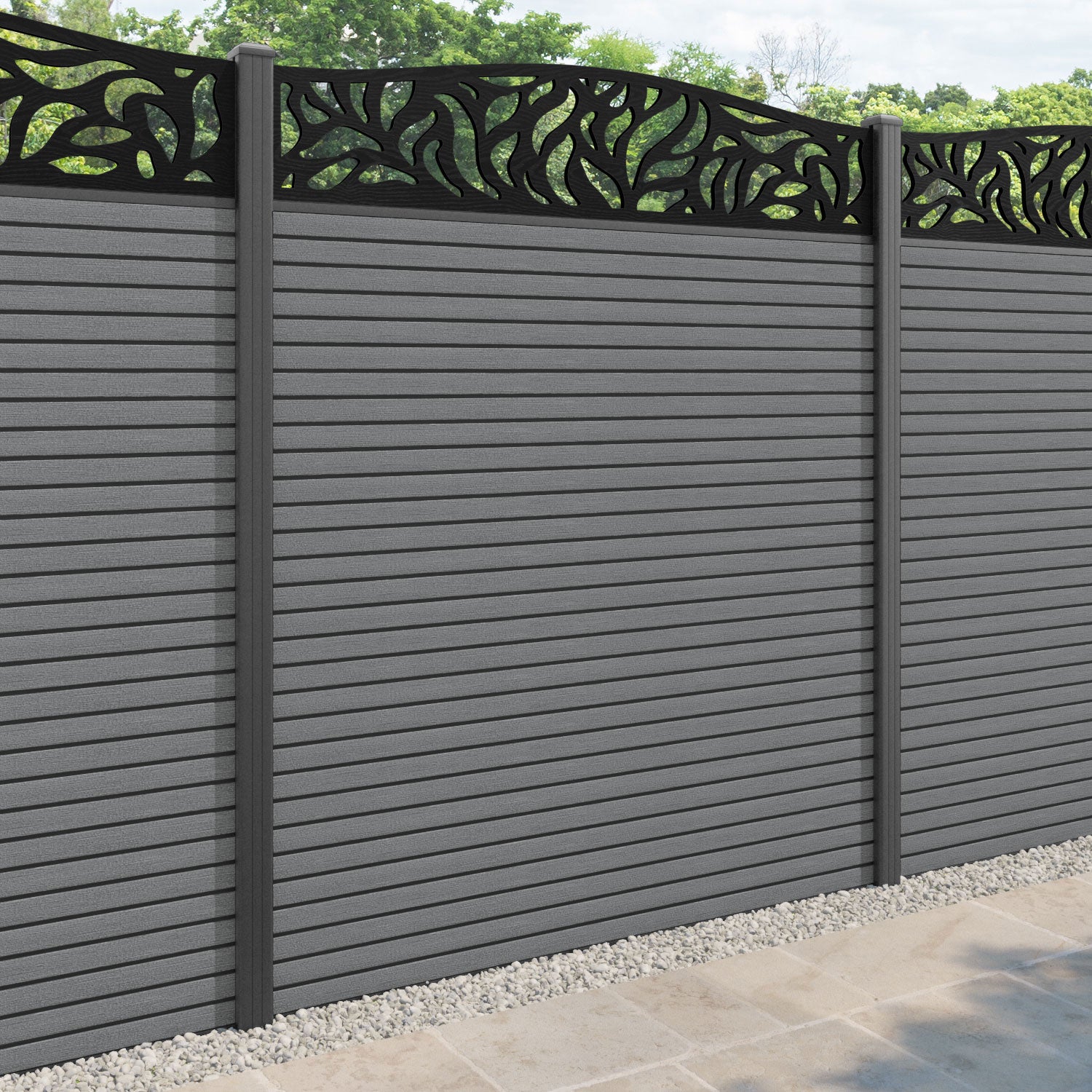 Hudson Plume Curved Top Fence Panel Mid Grey - with our aluminium posts