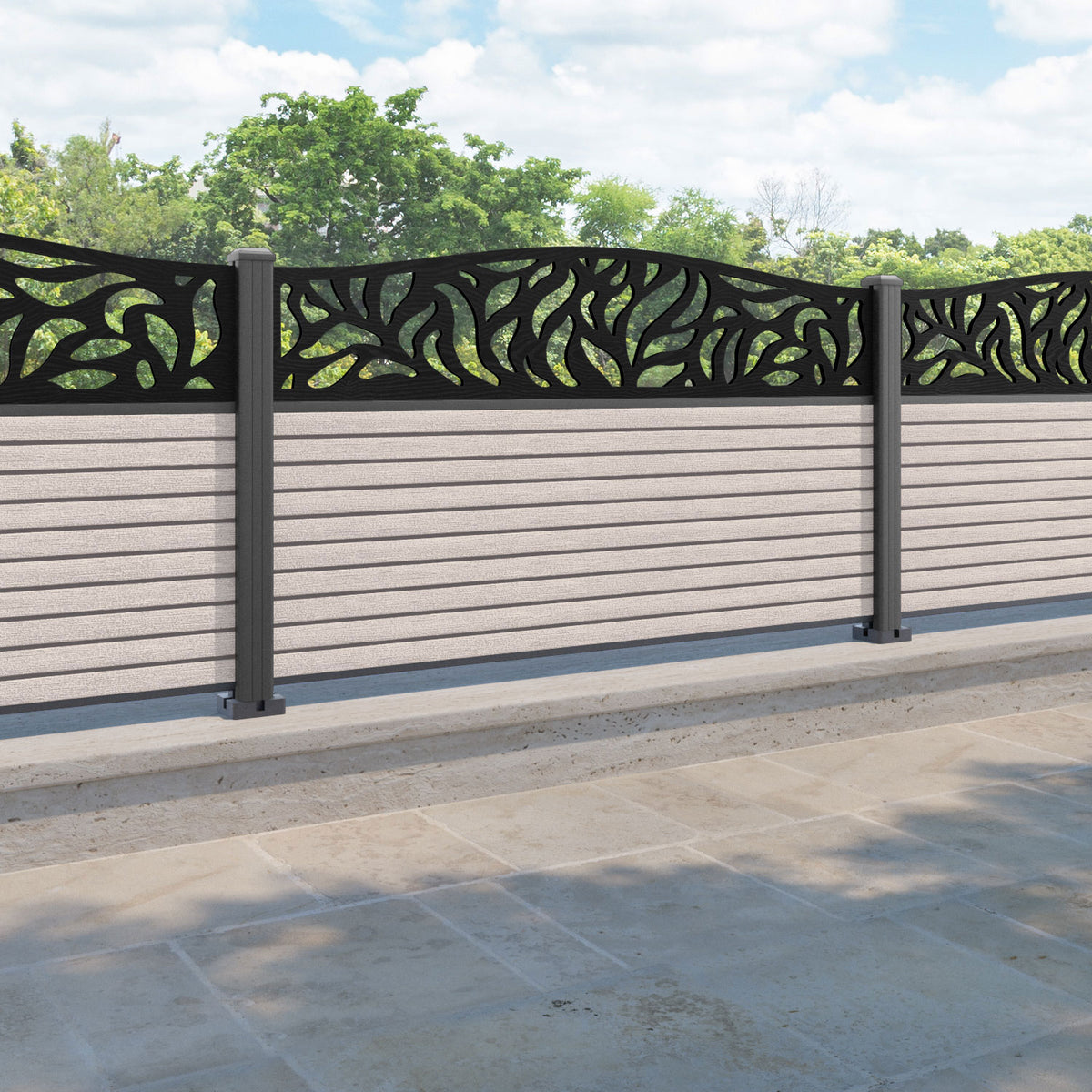 Hudson Plume Curved Top Fence Panel Mid Stone - with our aluminium posts