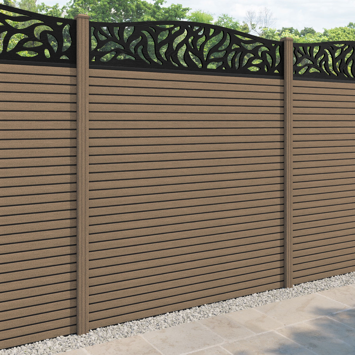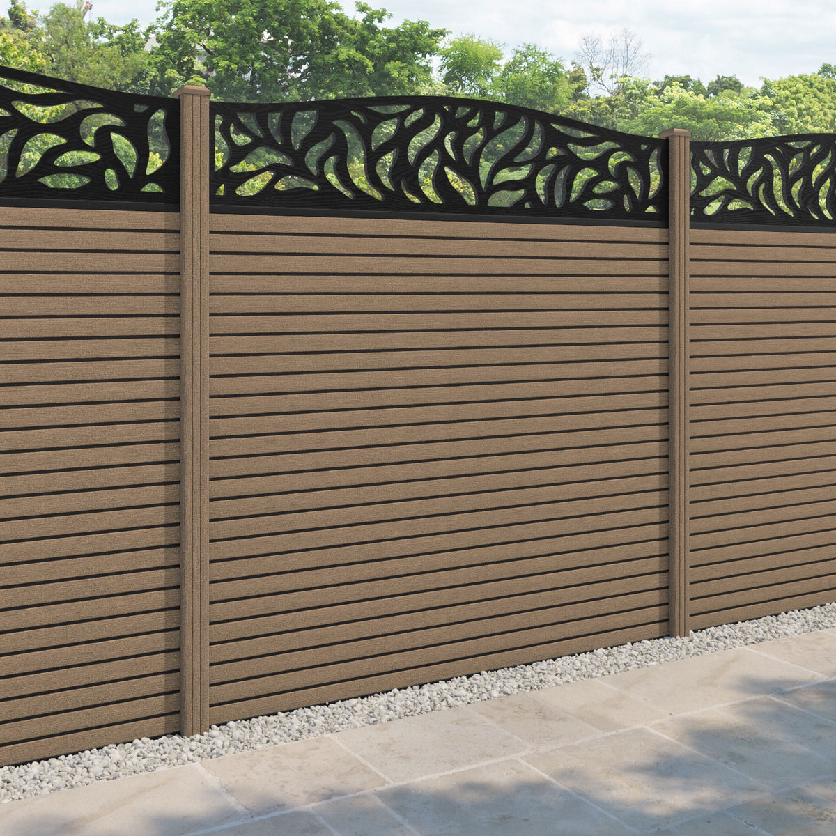 Hudson Plume Curved Top Fence Panel Teak - with our composite posts