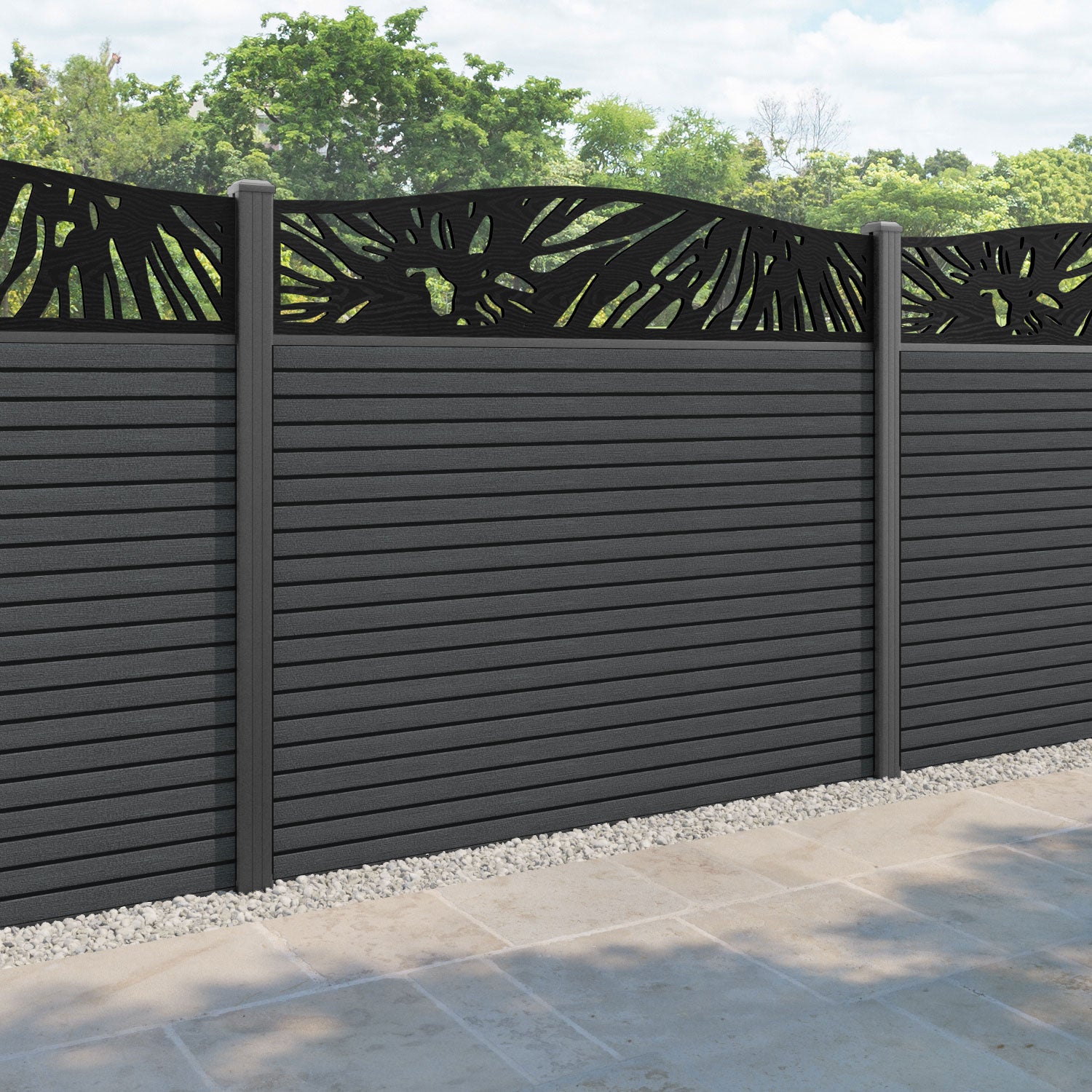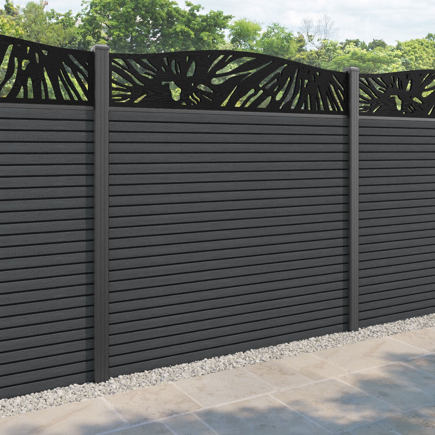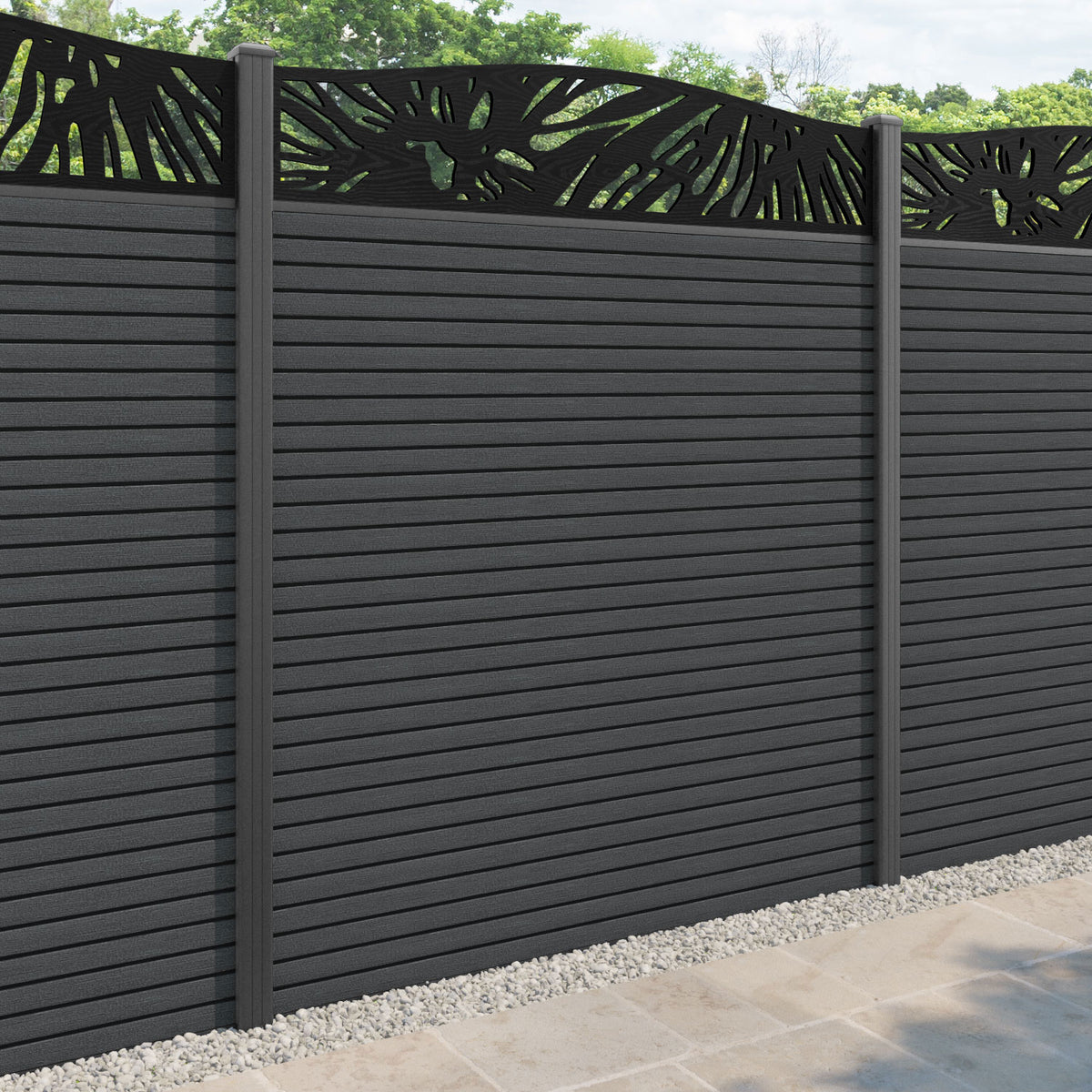 Hudson Poppy Curved Top Fence Panel Dark Grey - with our aluminium posts