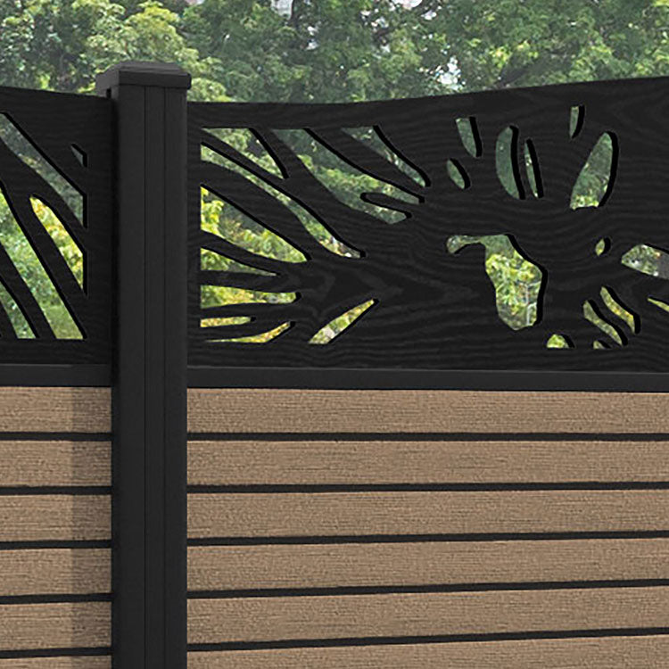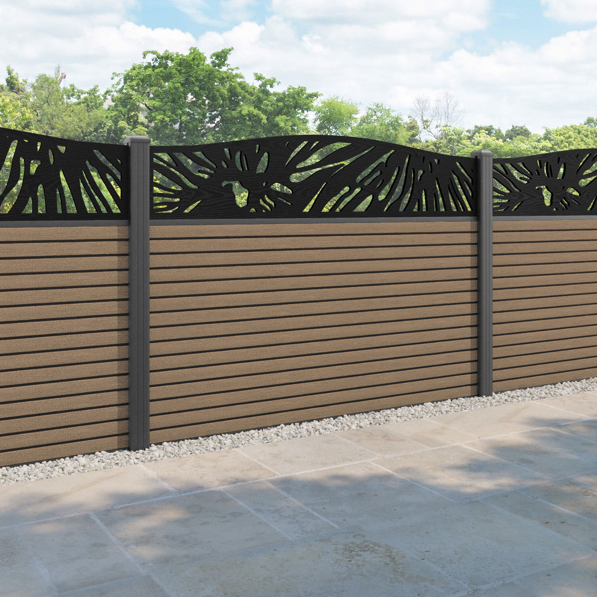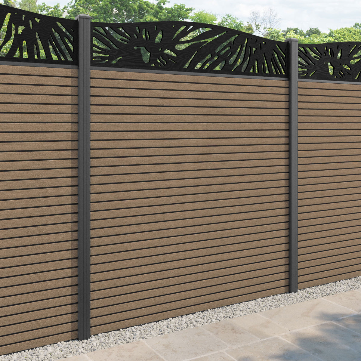 Hudson Poppy Curved Top Fence Panel Teak - with our aluminium posts