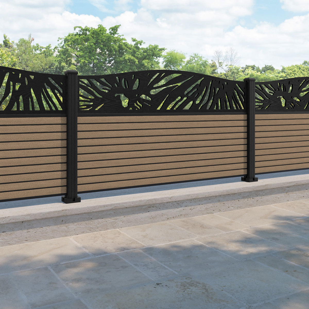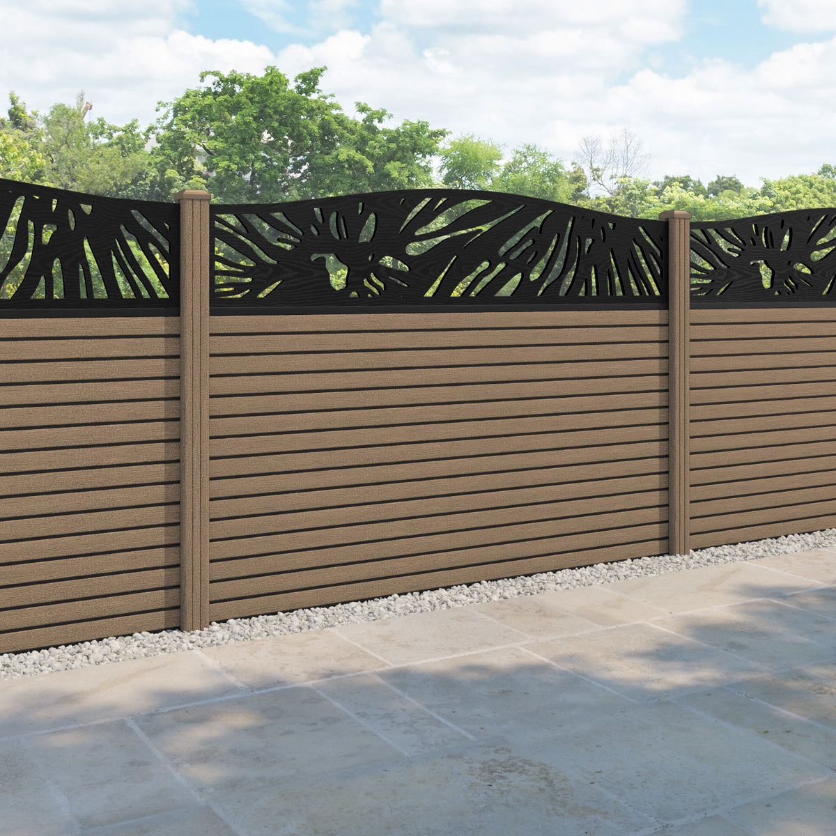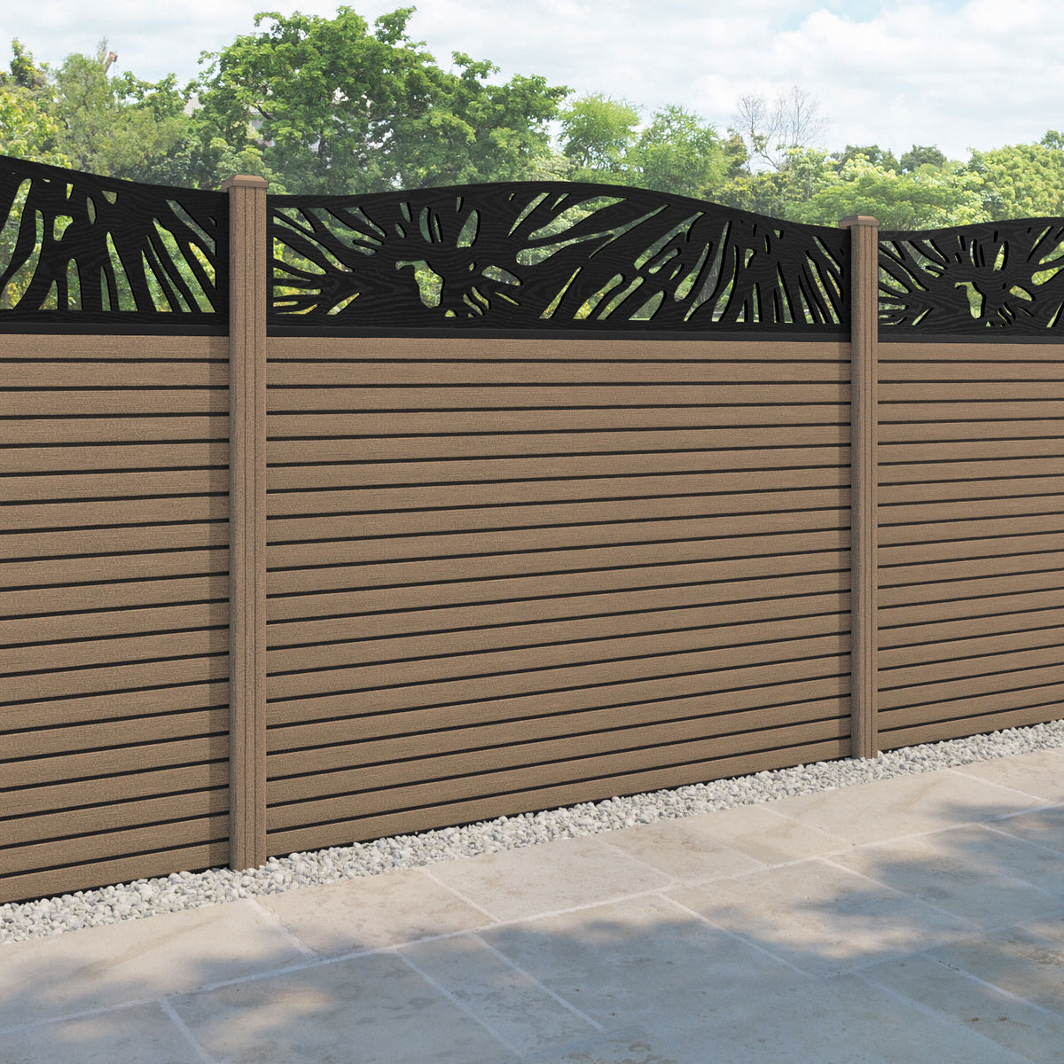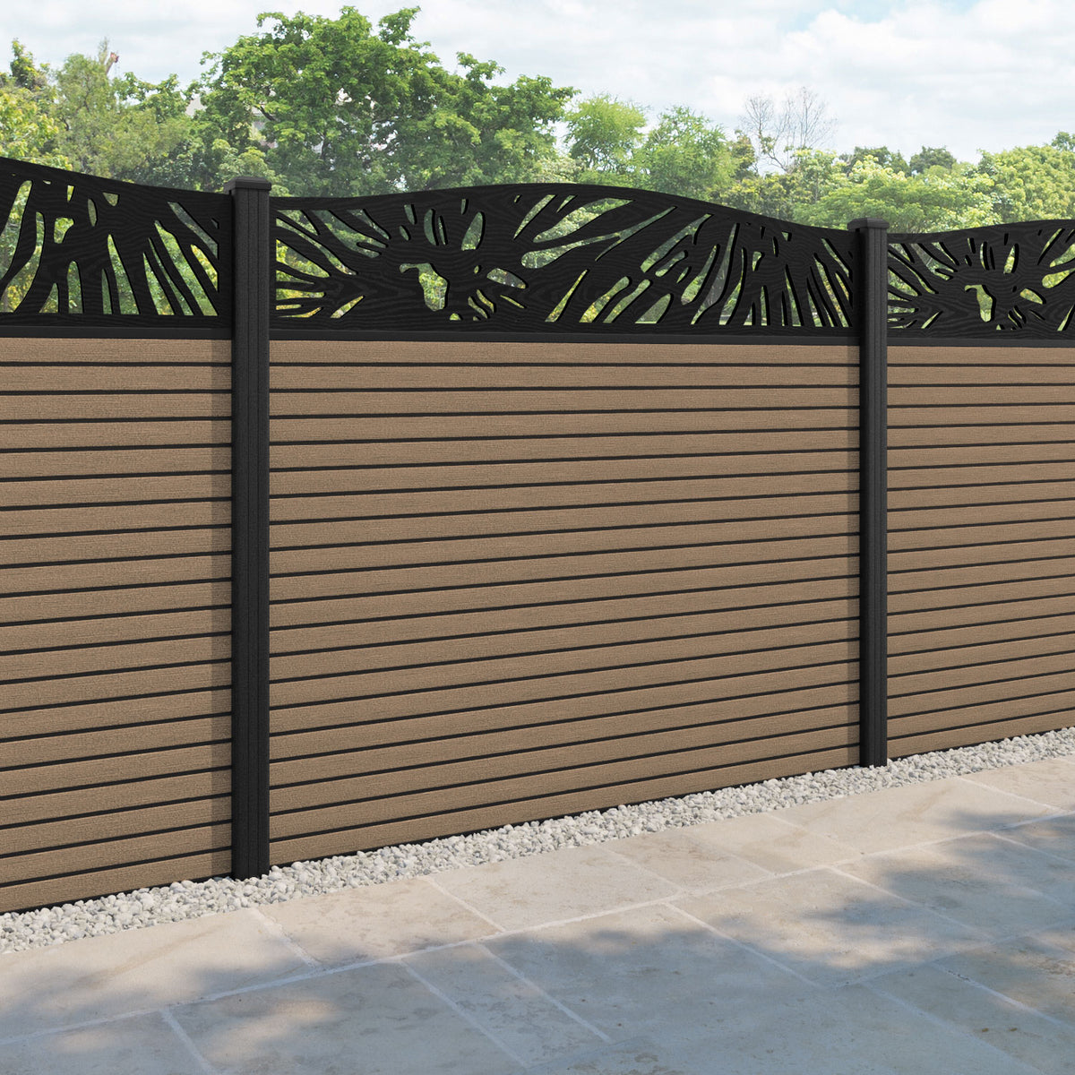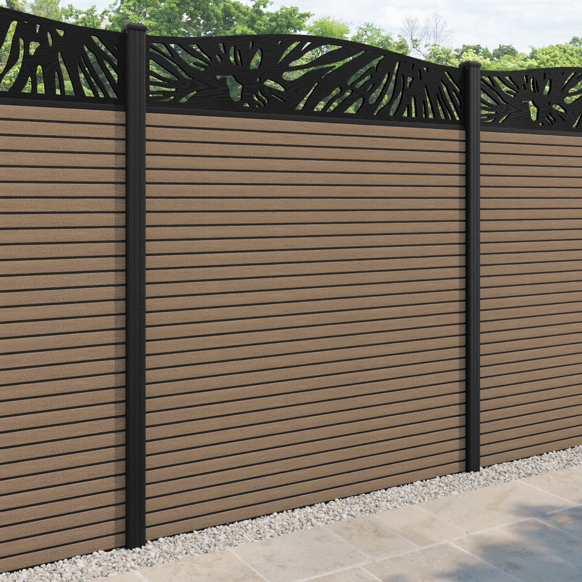 Hudson Poppy Curved Top Fence Panel Teak - with our composite posts