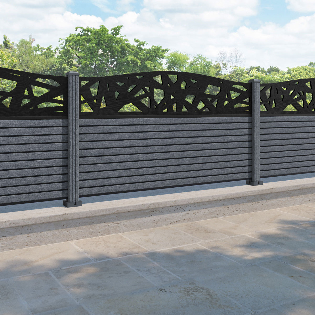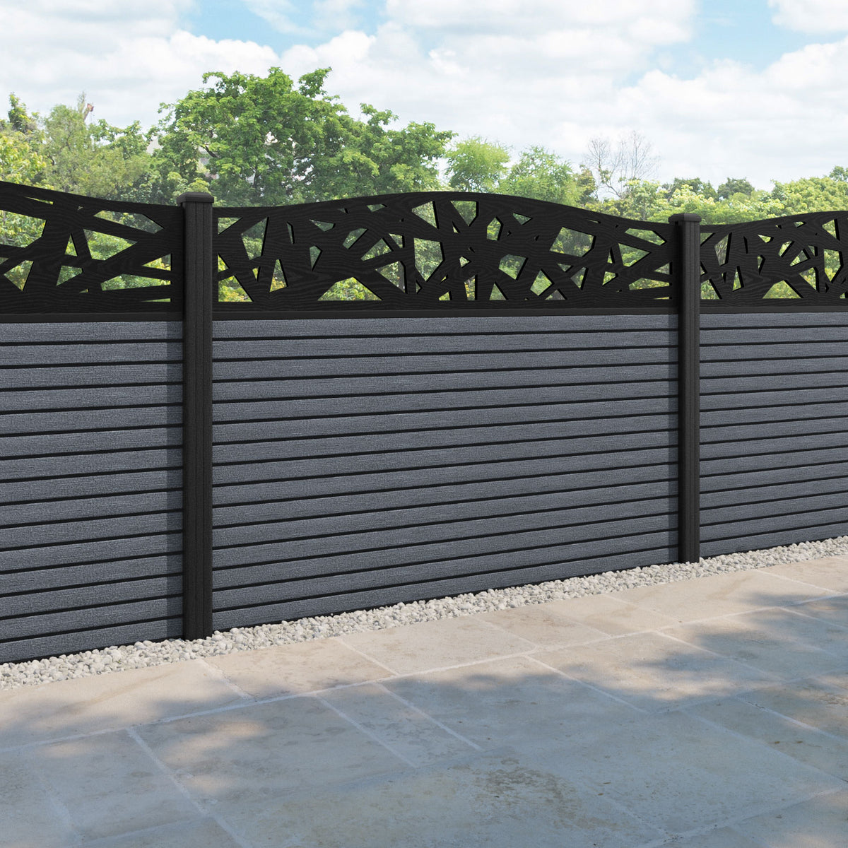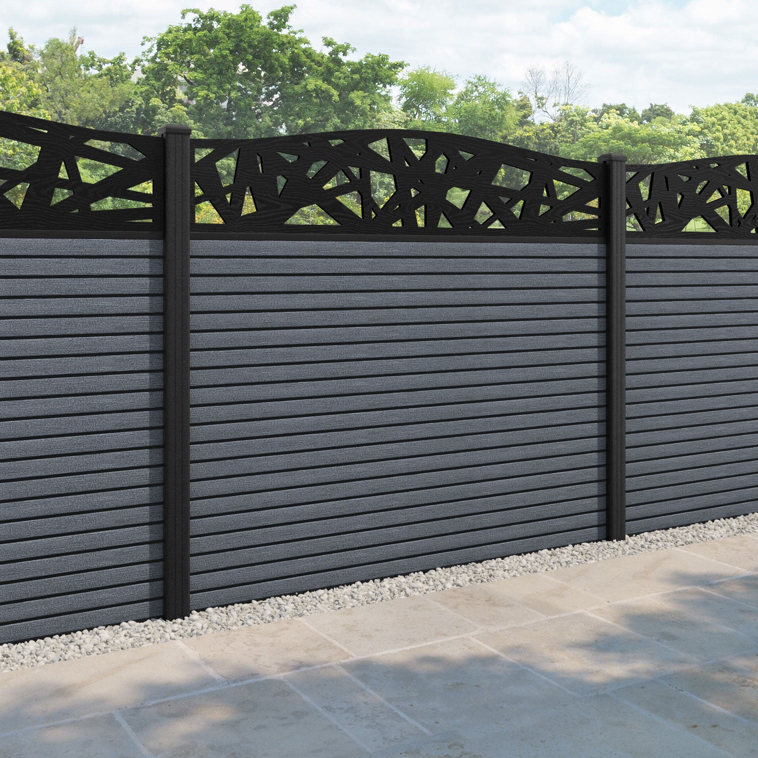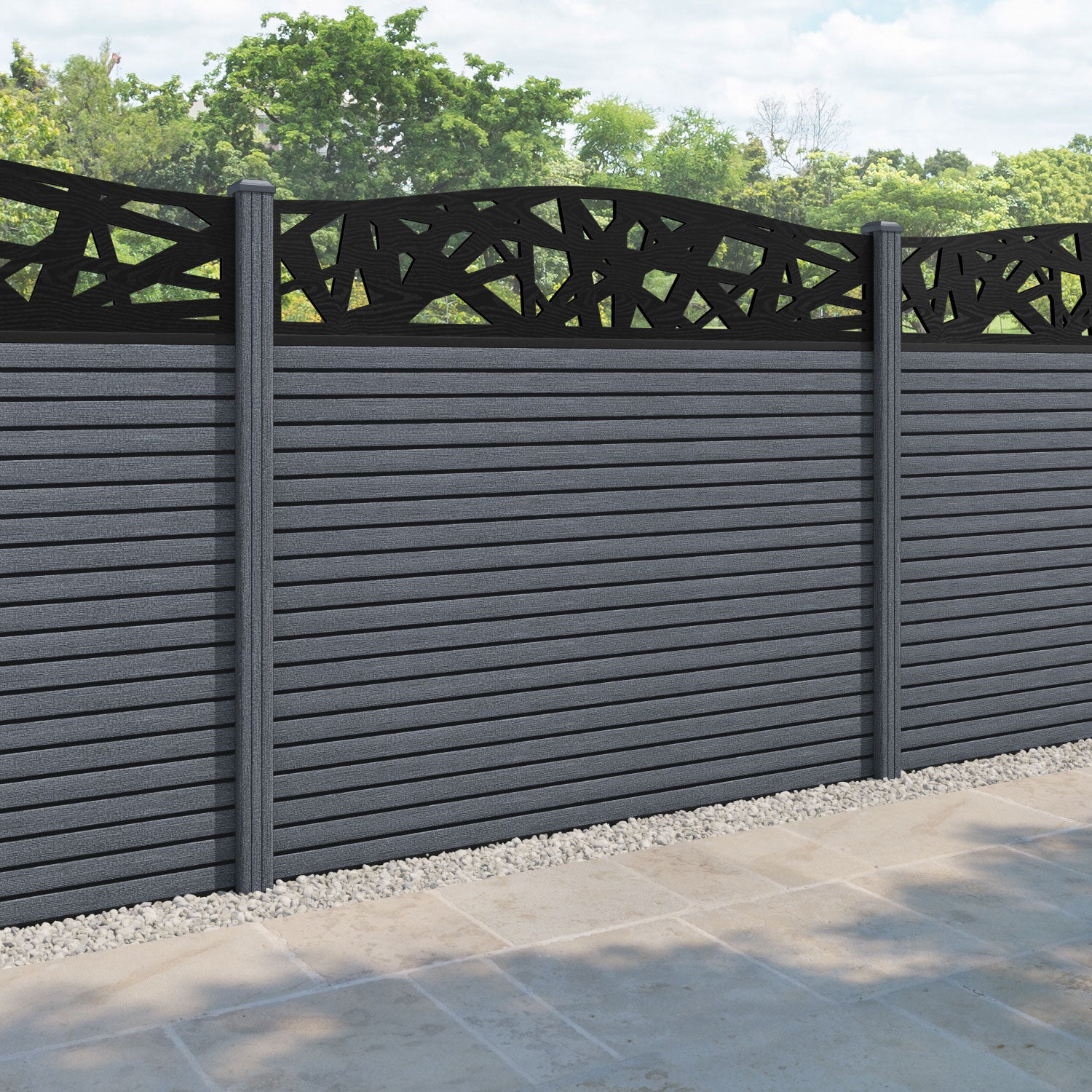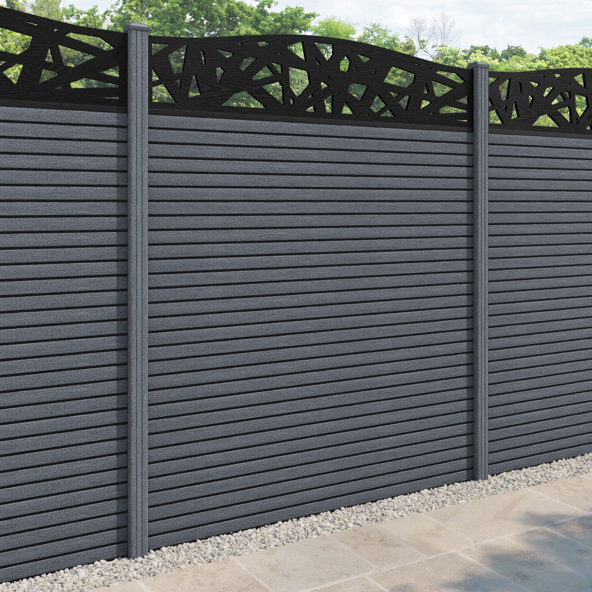 Hudson Prism Curved Top Fence Panel Anthracite - with our composite posts