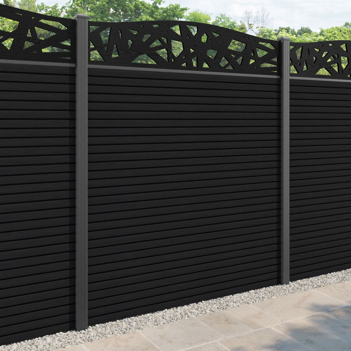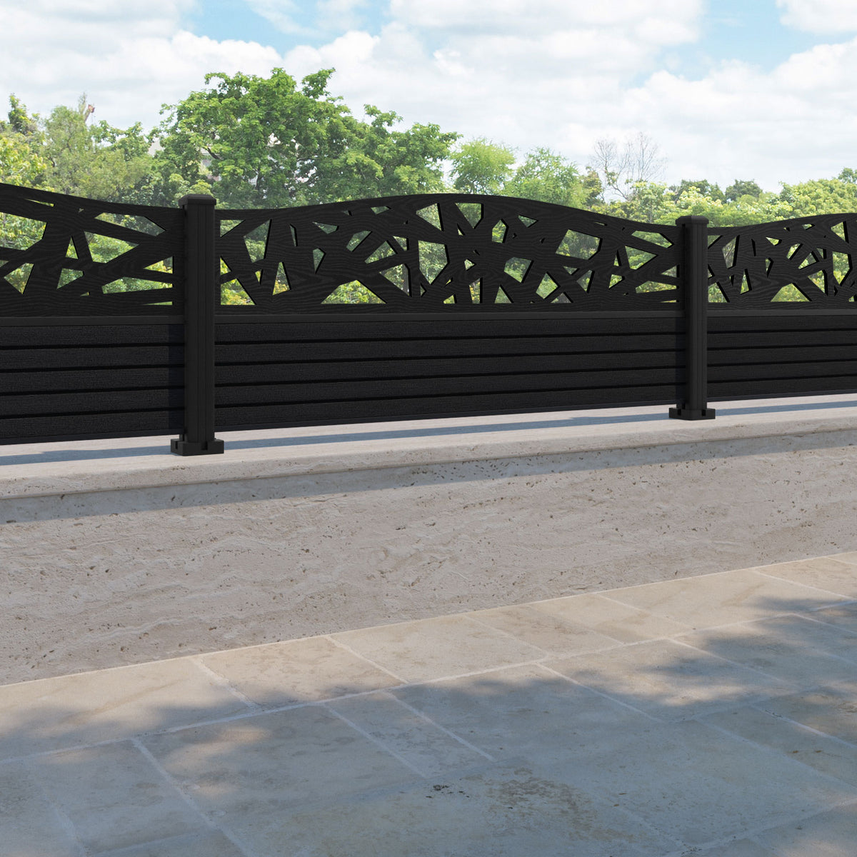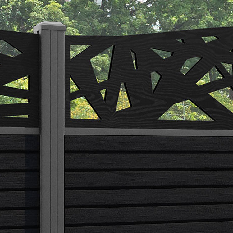 Hudson Prism Curved Top Fence Panel Black - with our aluminium posts