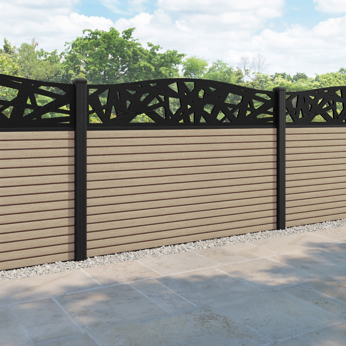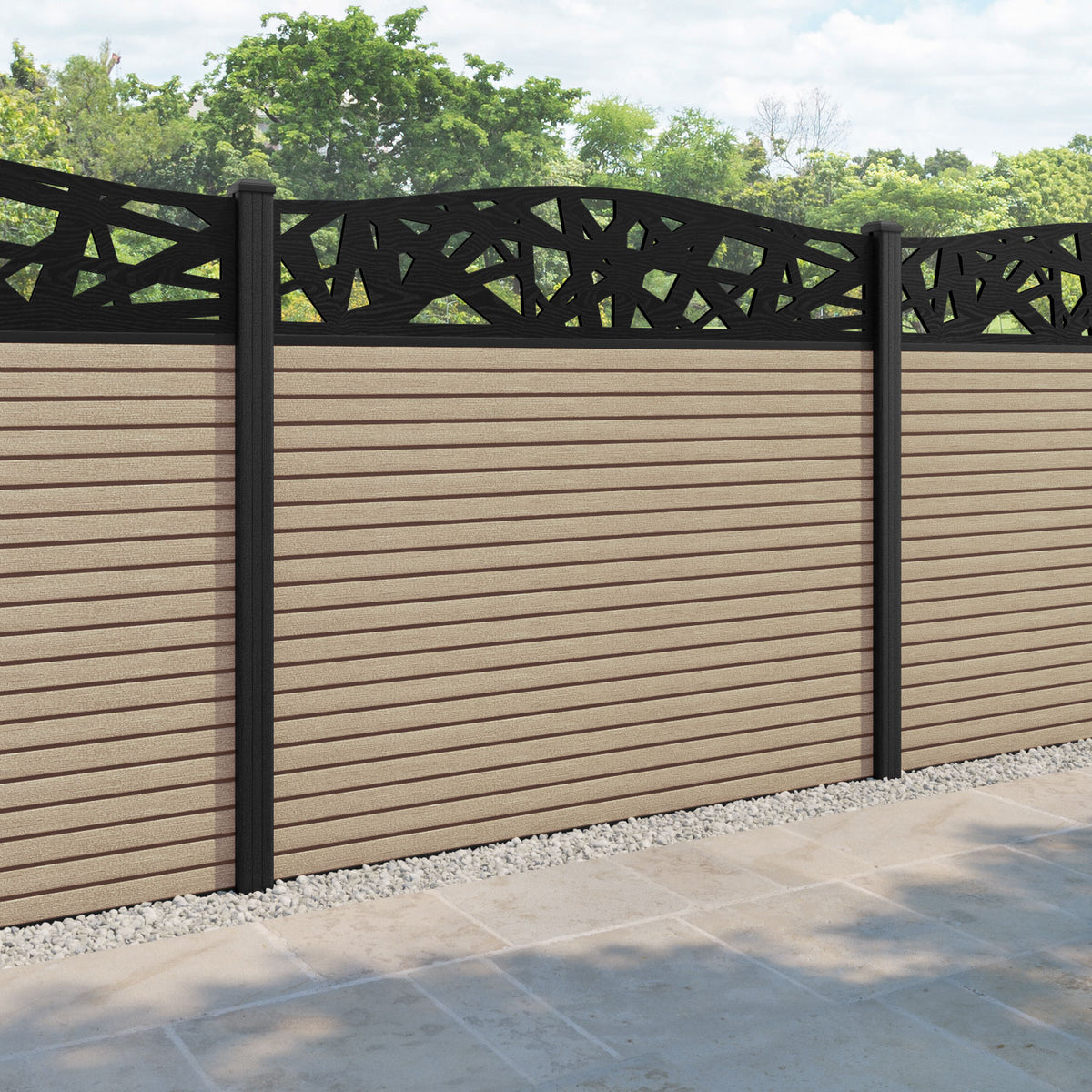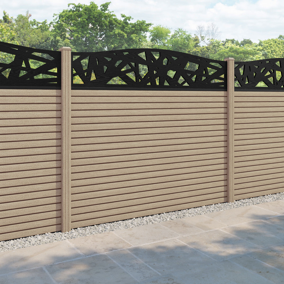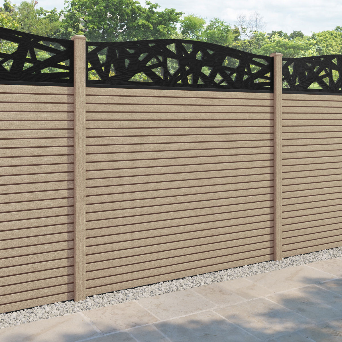 Hudson Prism Curved Top Fence Panel Light Oak - with our composite posts