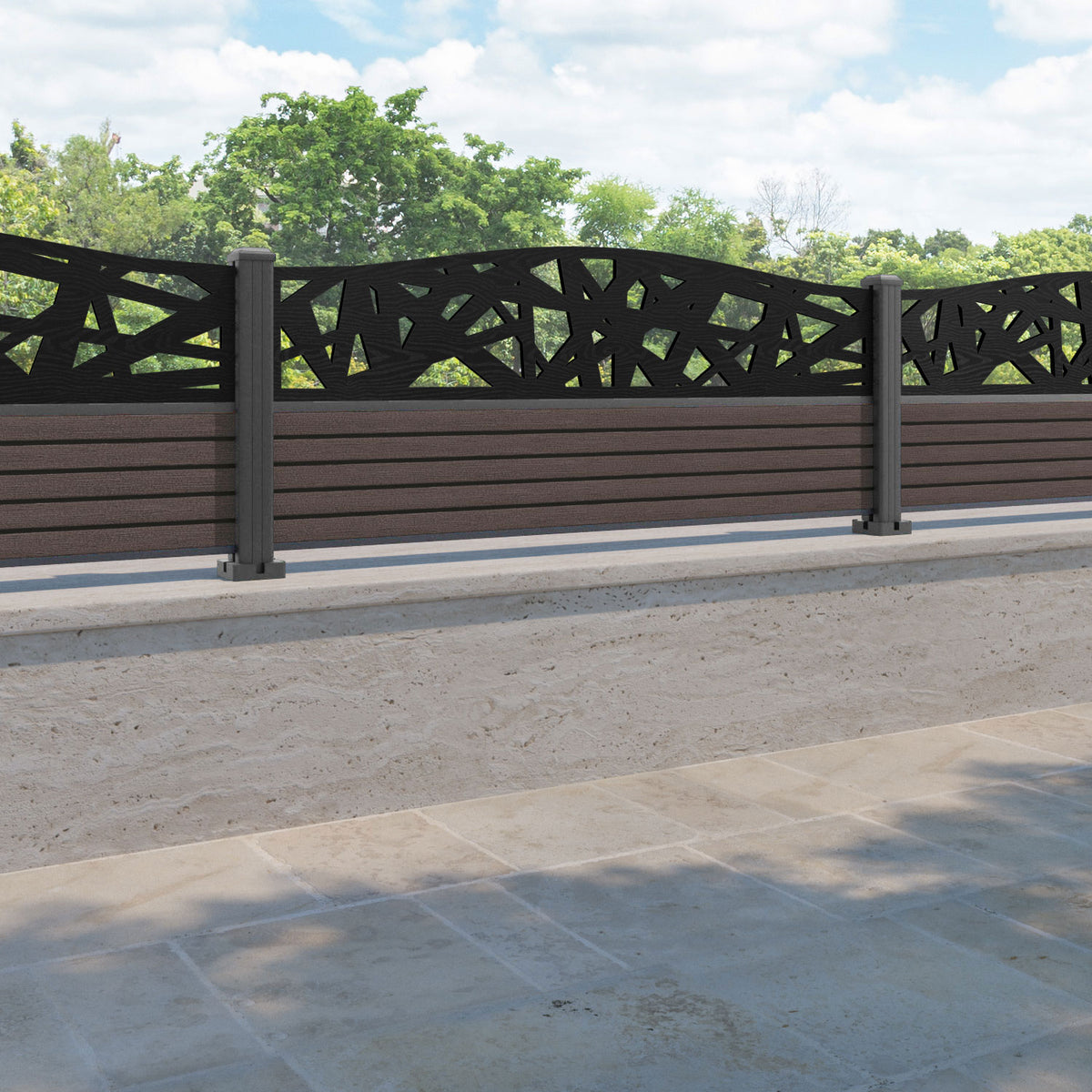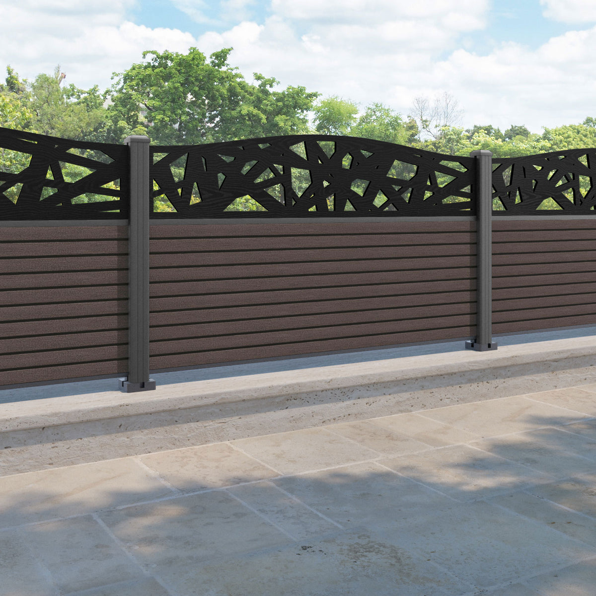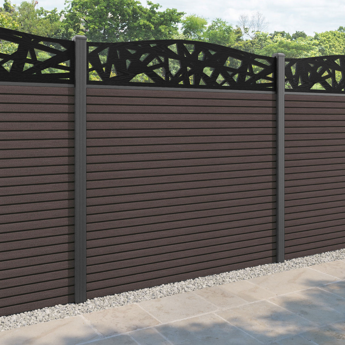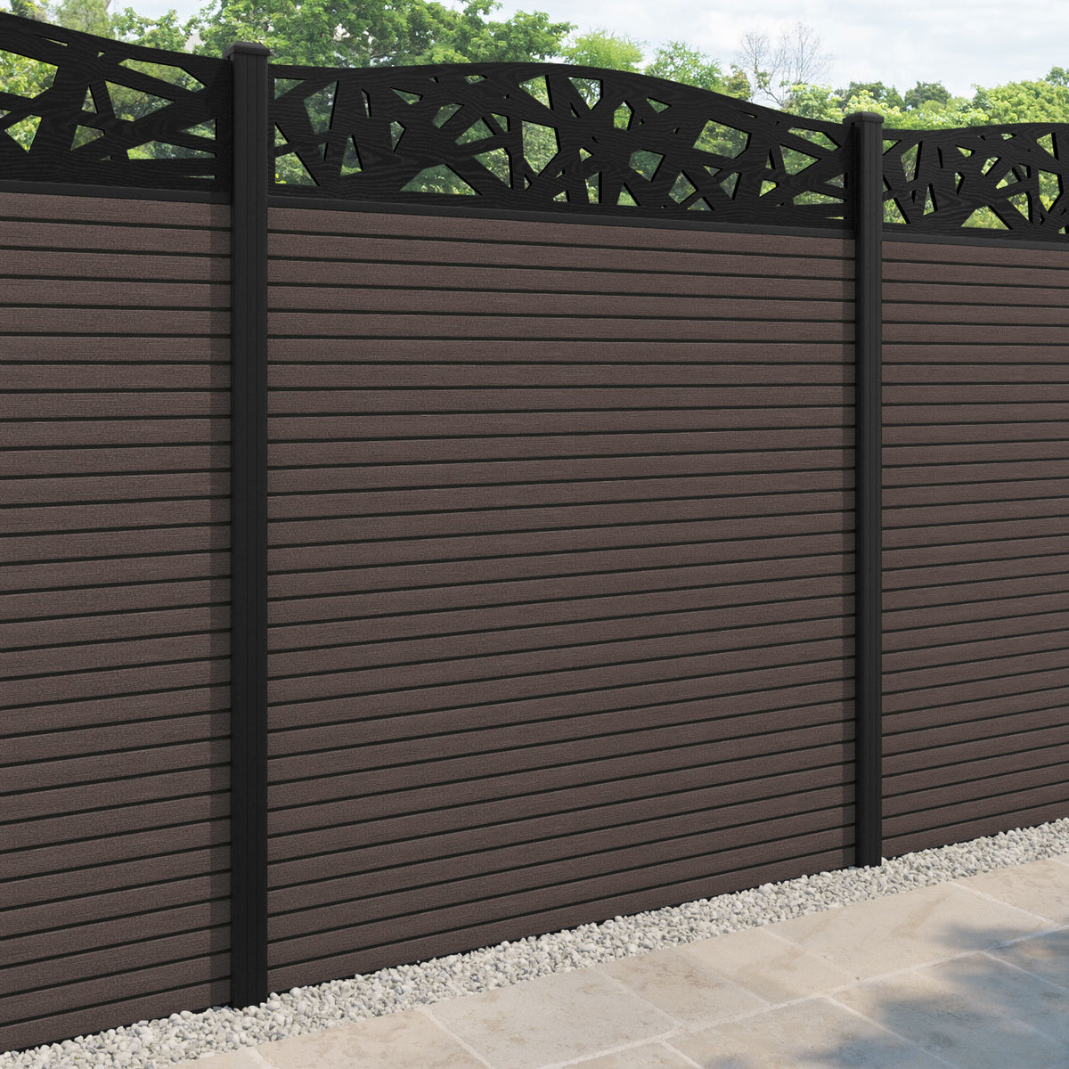 Hudson Prism Curved Top Fence Panel Mid Brown - with our aluminium posts