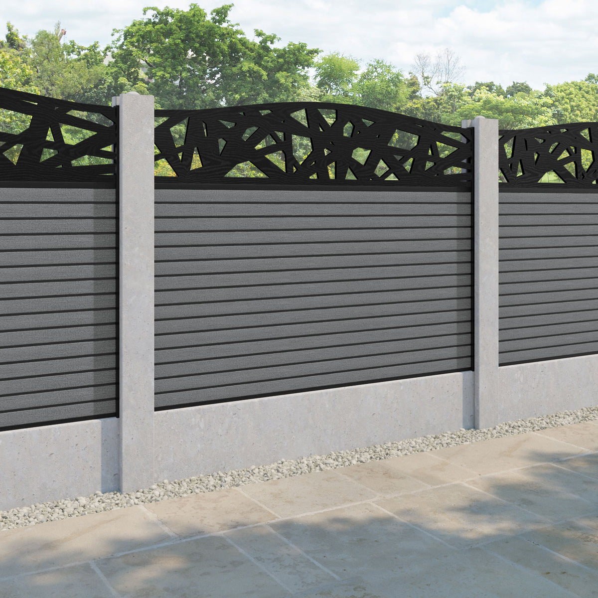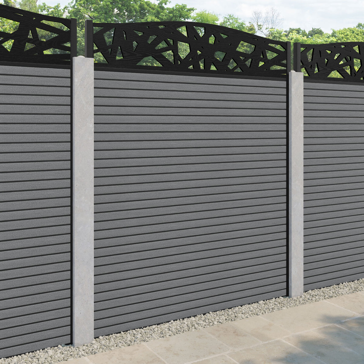 Hudson Prism Curved Top Fence Panel Mid Grey - for existing concrete posts