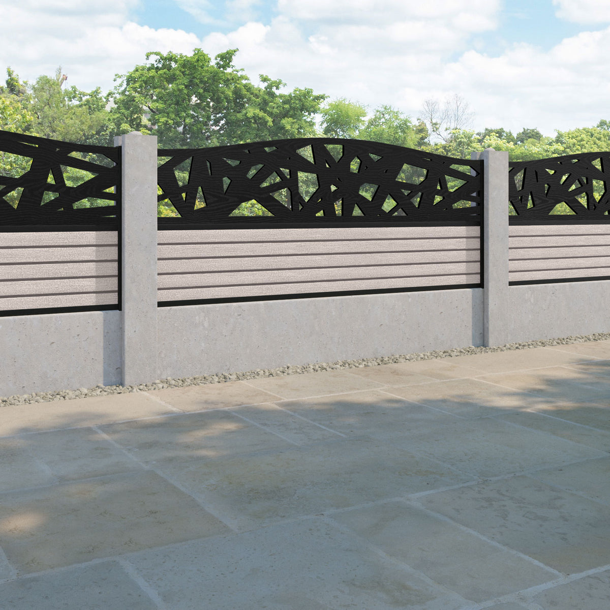 Hudson Prism Curved Top Fence Panel Mid Stone - for existing concrete posts