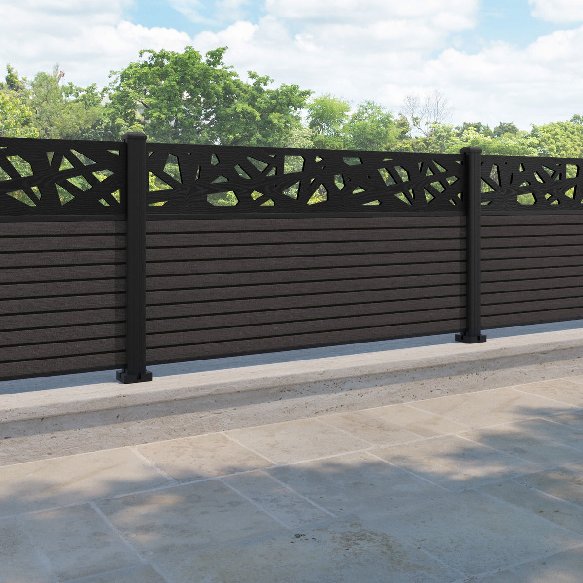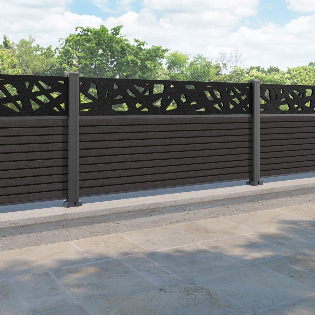 Hudson Prism Fence Panel Dark Oak - with our aluminium posts