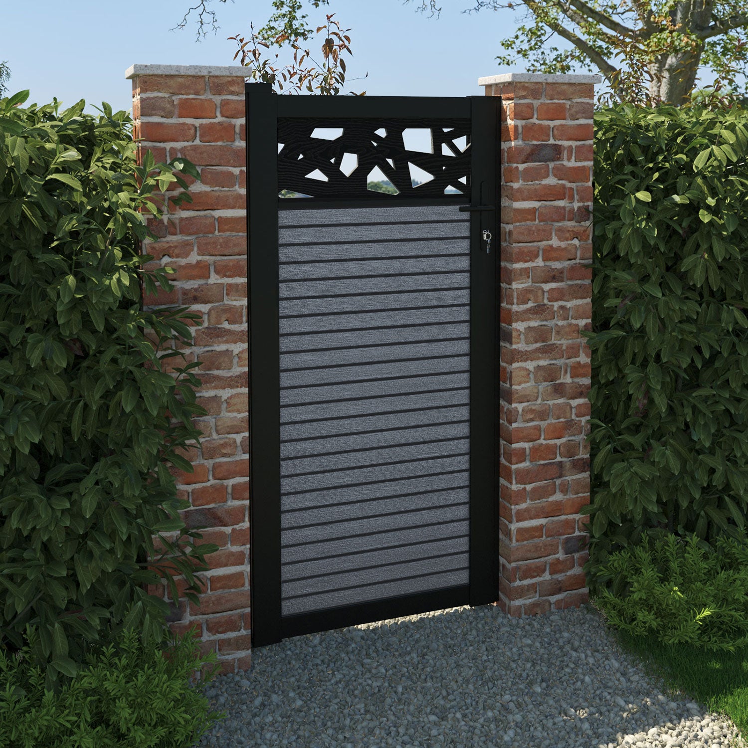 Pair your gate with our eco-friendly composite or aluminium slats for a seamless match with our fencing collections, ensuring a stylish and cohesive look.