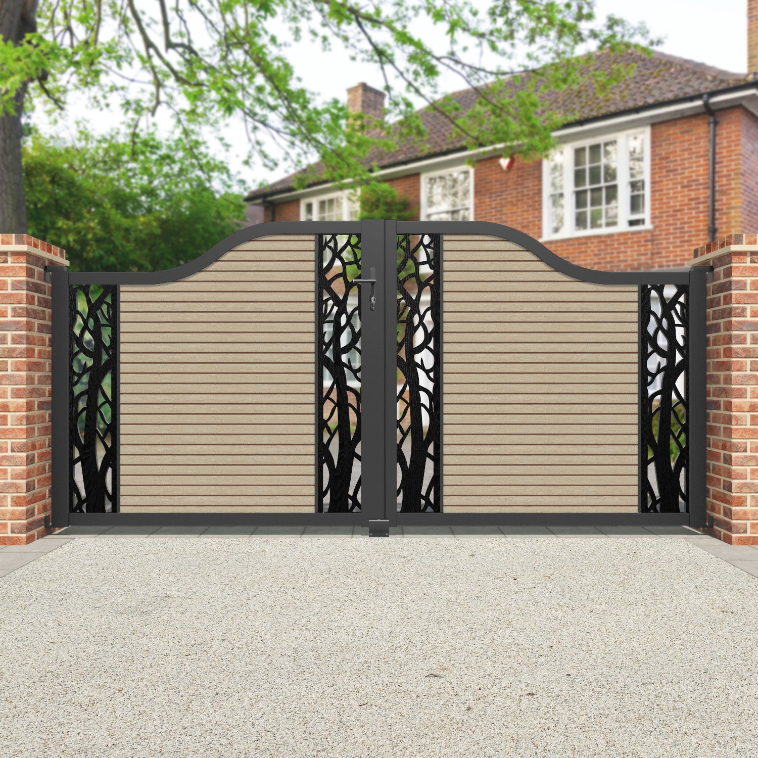 Hudson Twilight Curved Top Driveway Gate Light Oak- Middle & End Screen