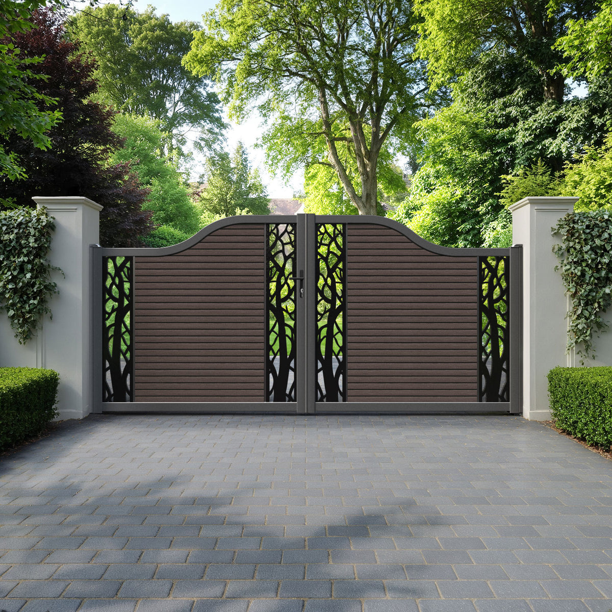 Hudson Twilight Curved Top Driveway Gate Mid Brown - Middle & End Screen