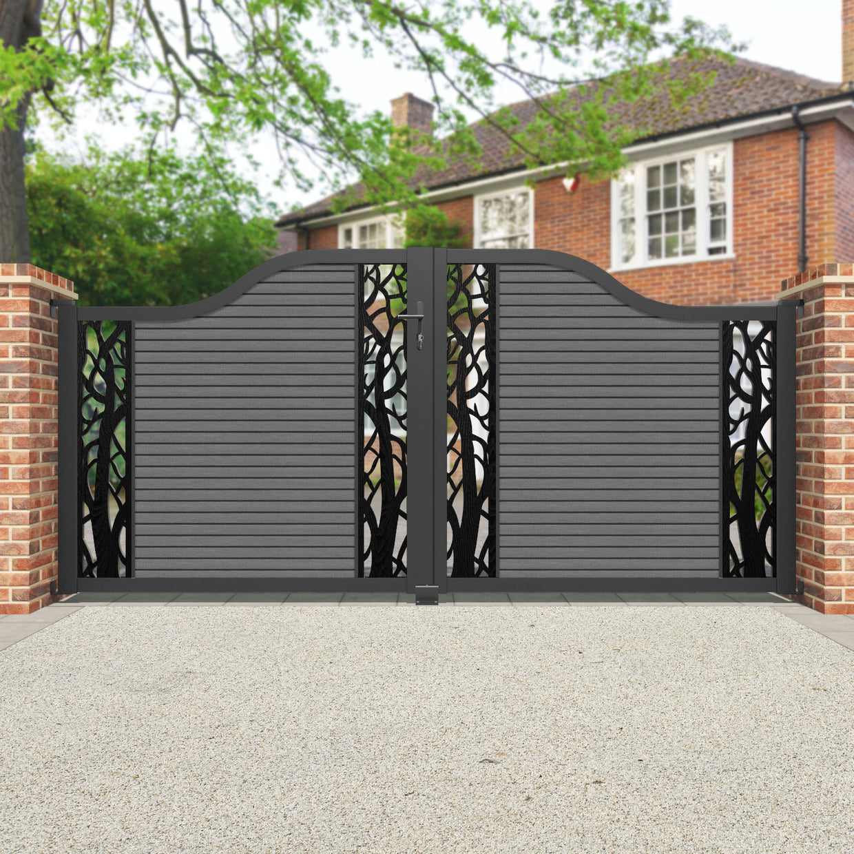 Hudson Twilight Curved Top Driveway Gate Mid Grey - Middle & End Screen