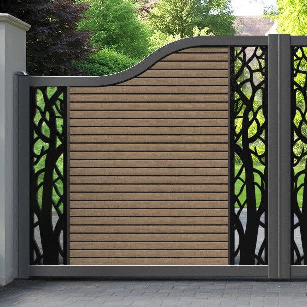 Hudson Twilight Curved Top Driveway Gate Teak - Middle & End Screen