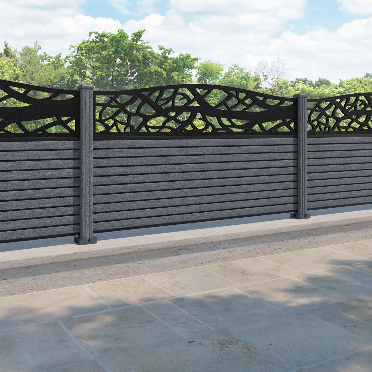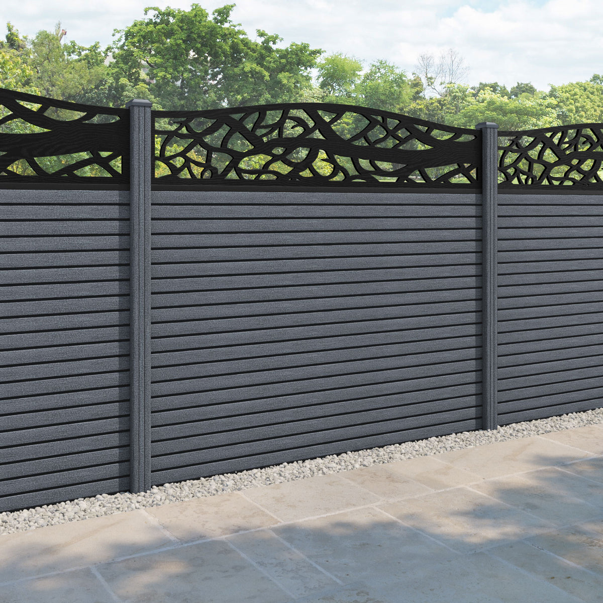 Hudson Twilight Curved Top Fence Panel Anthracite - with our composite posts