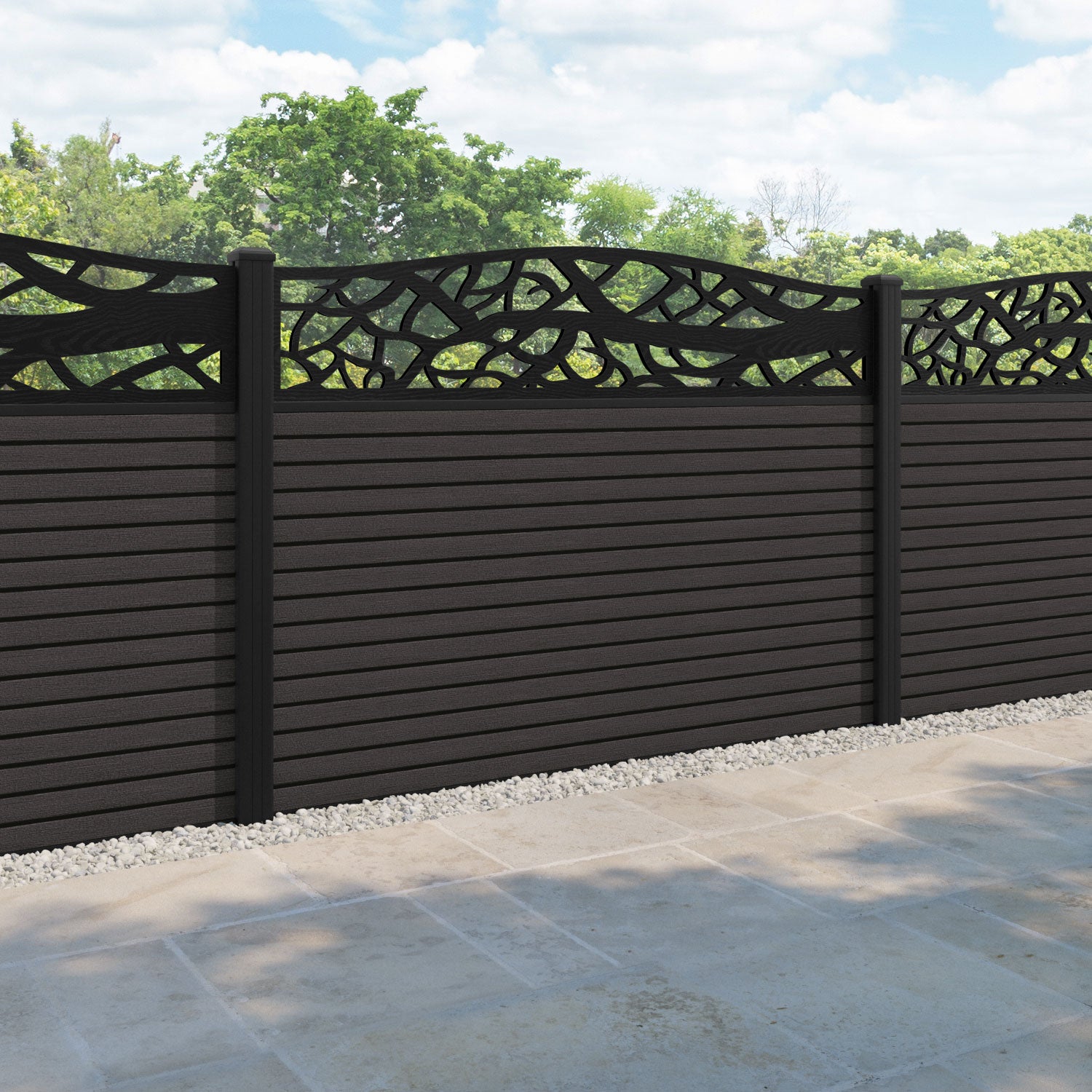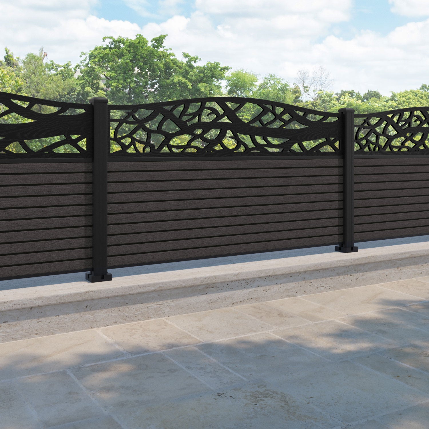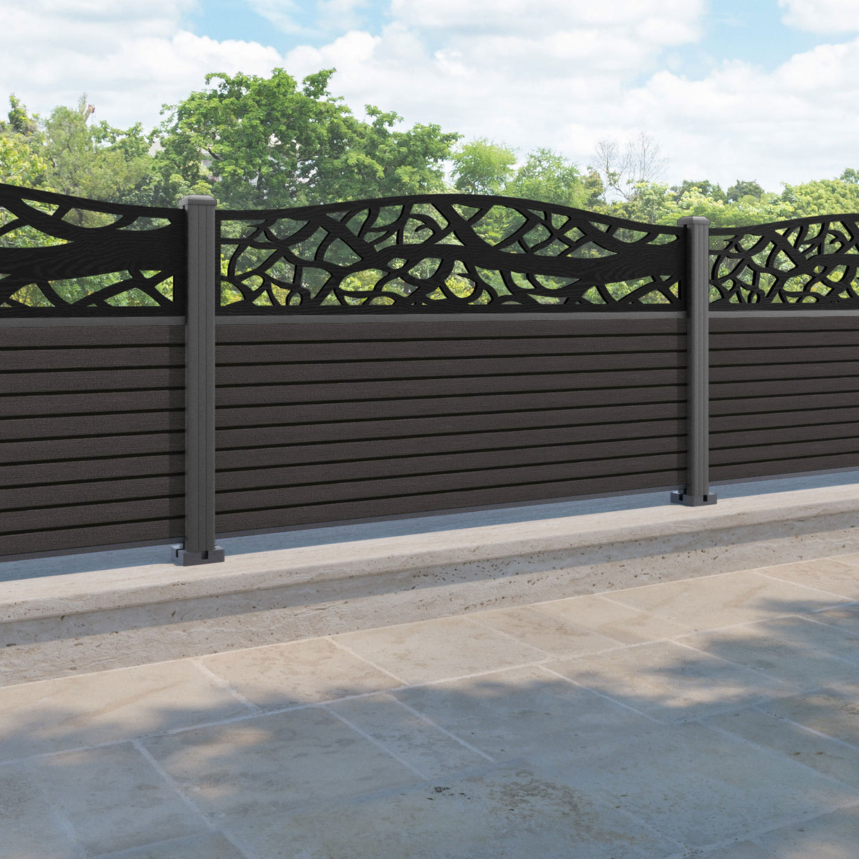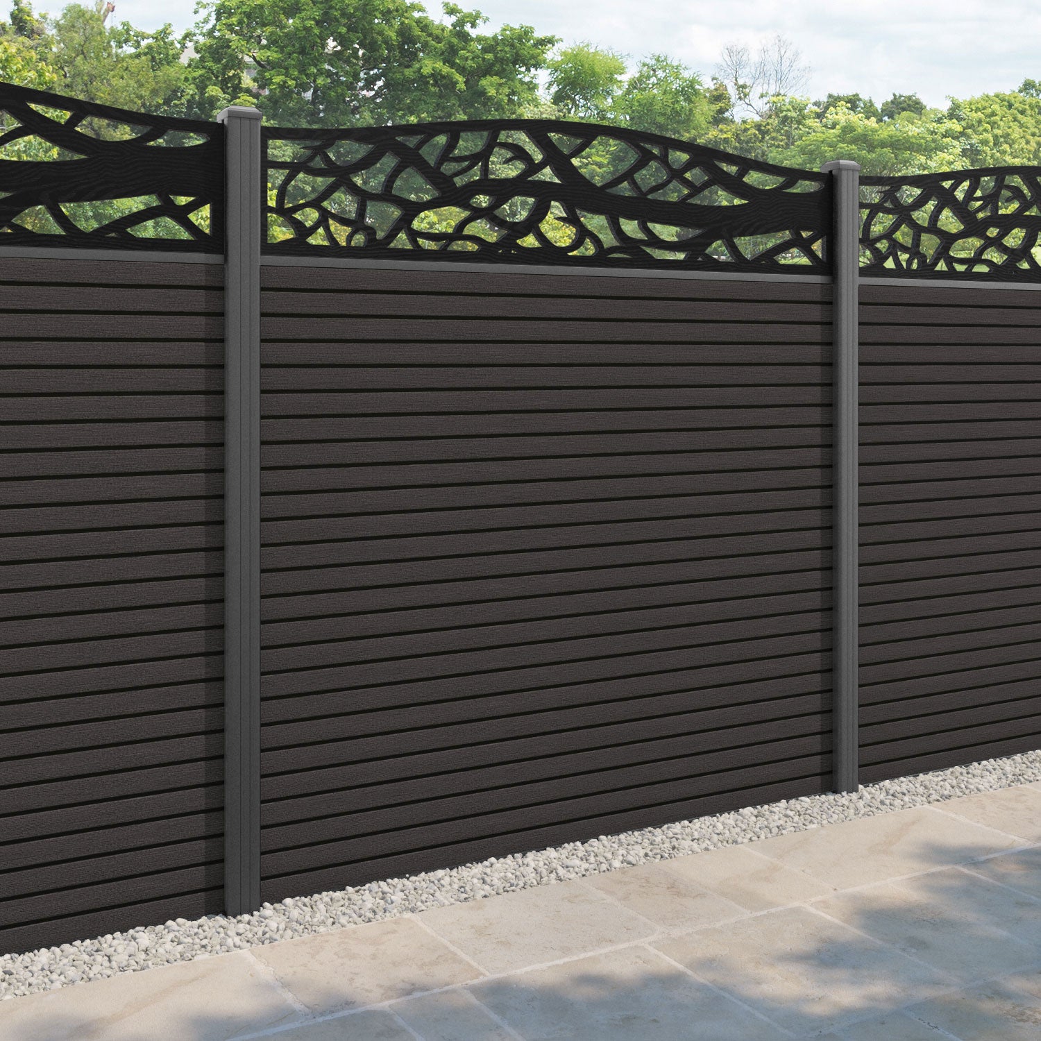 Hudson Twilight Curved Top Fence Panel - Dark Oak - with our aluminium posts