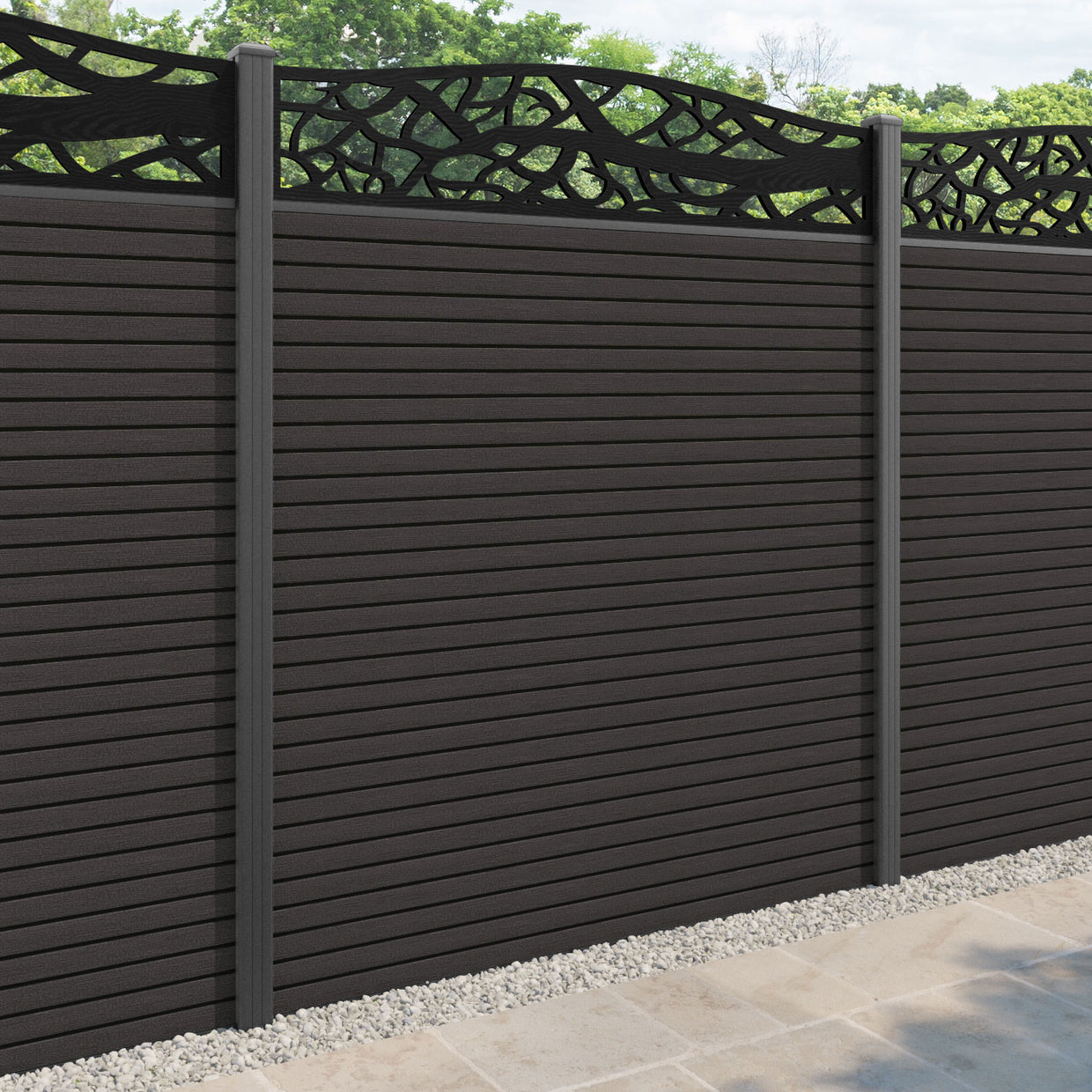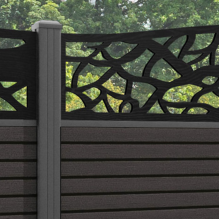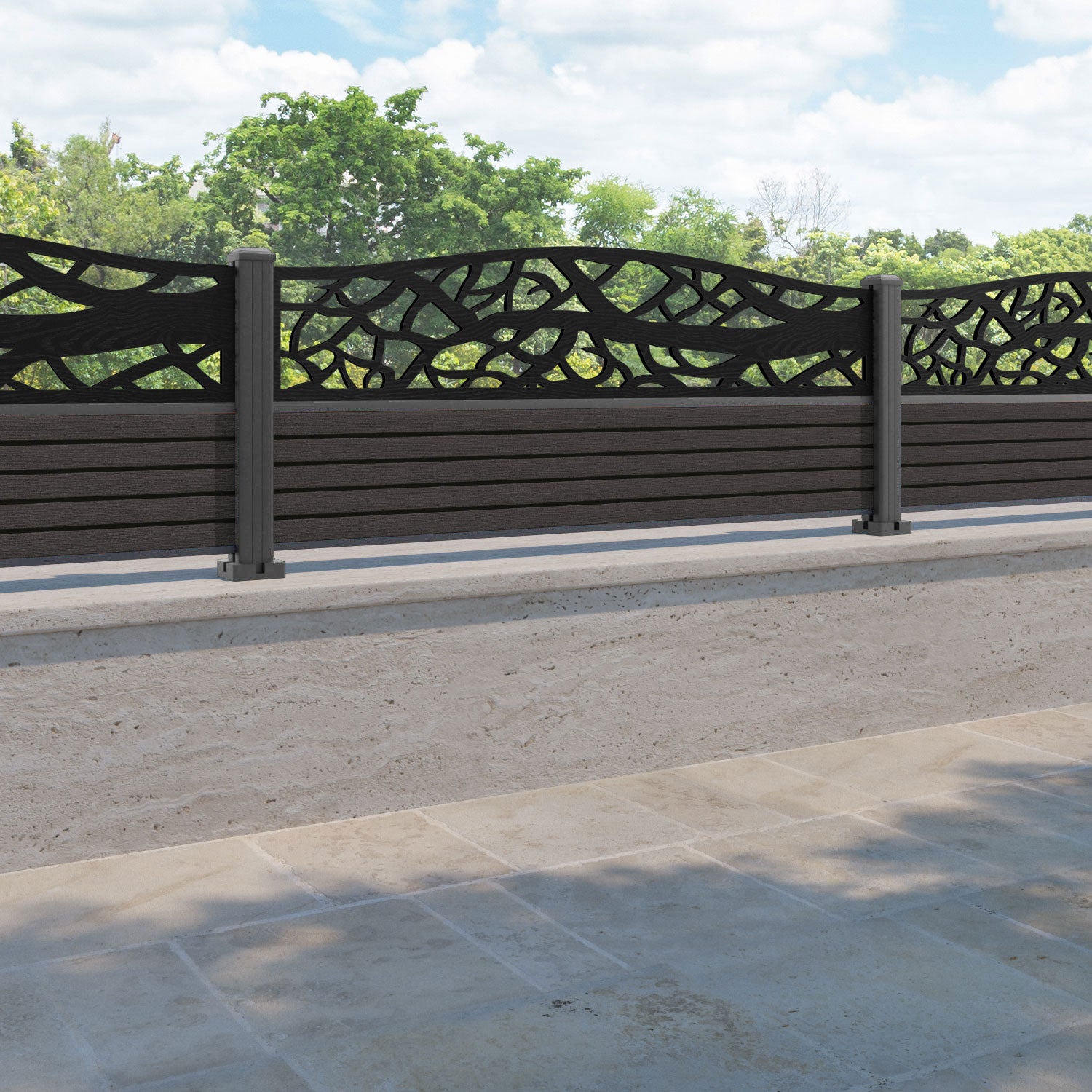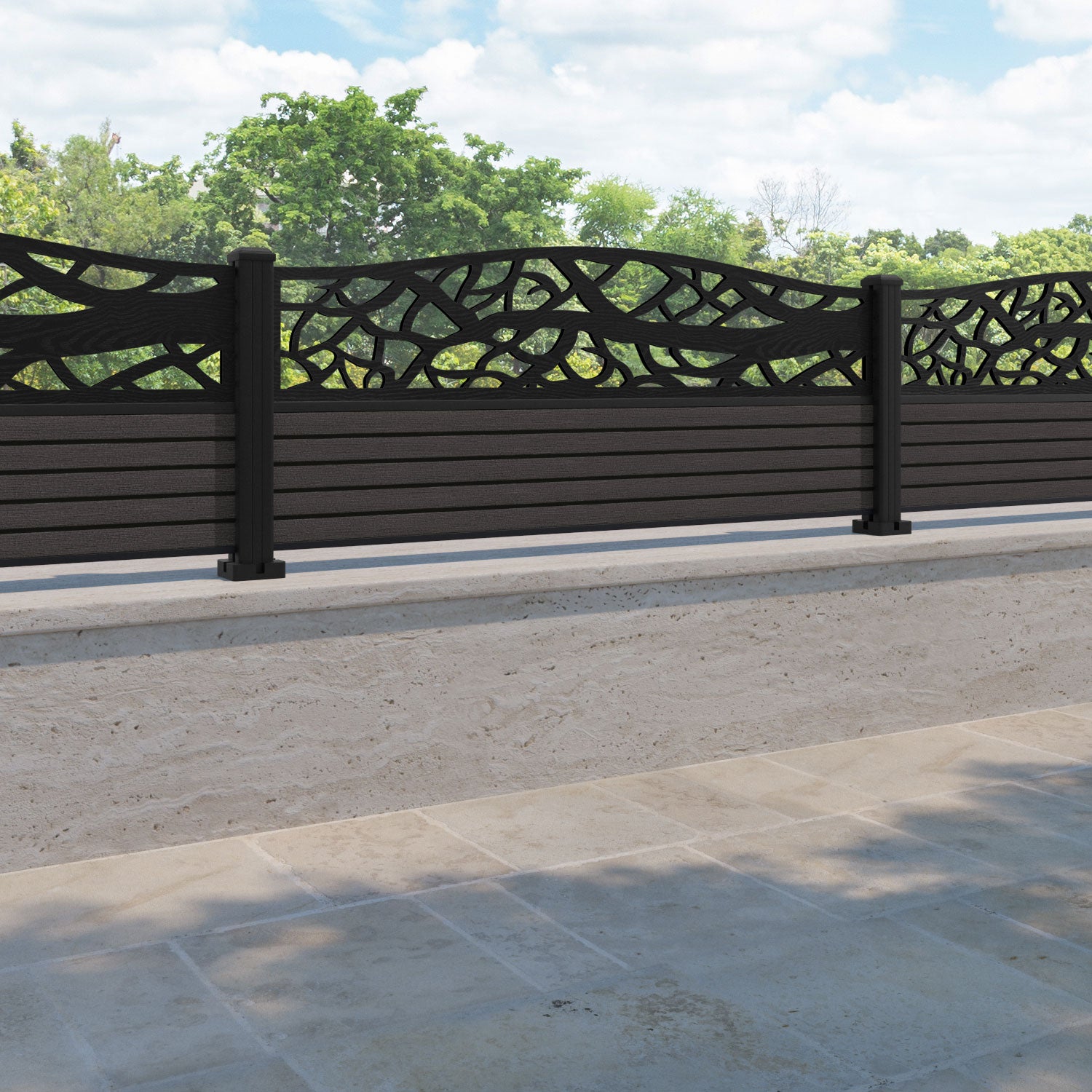 Hudson Twilight Curved Top Fence Panel - Dark Oak - with our aluminium posts