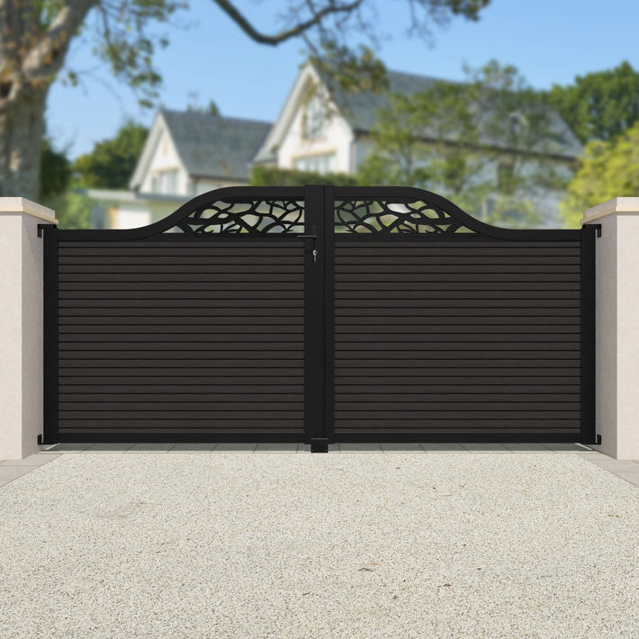 Reference: Hudson Twilight Curved Top Fence Panel - Dark Oak - with our aluminium posts