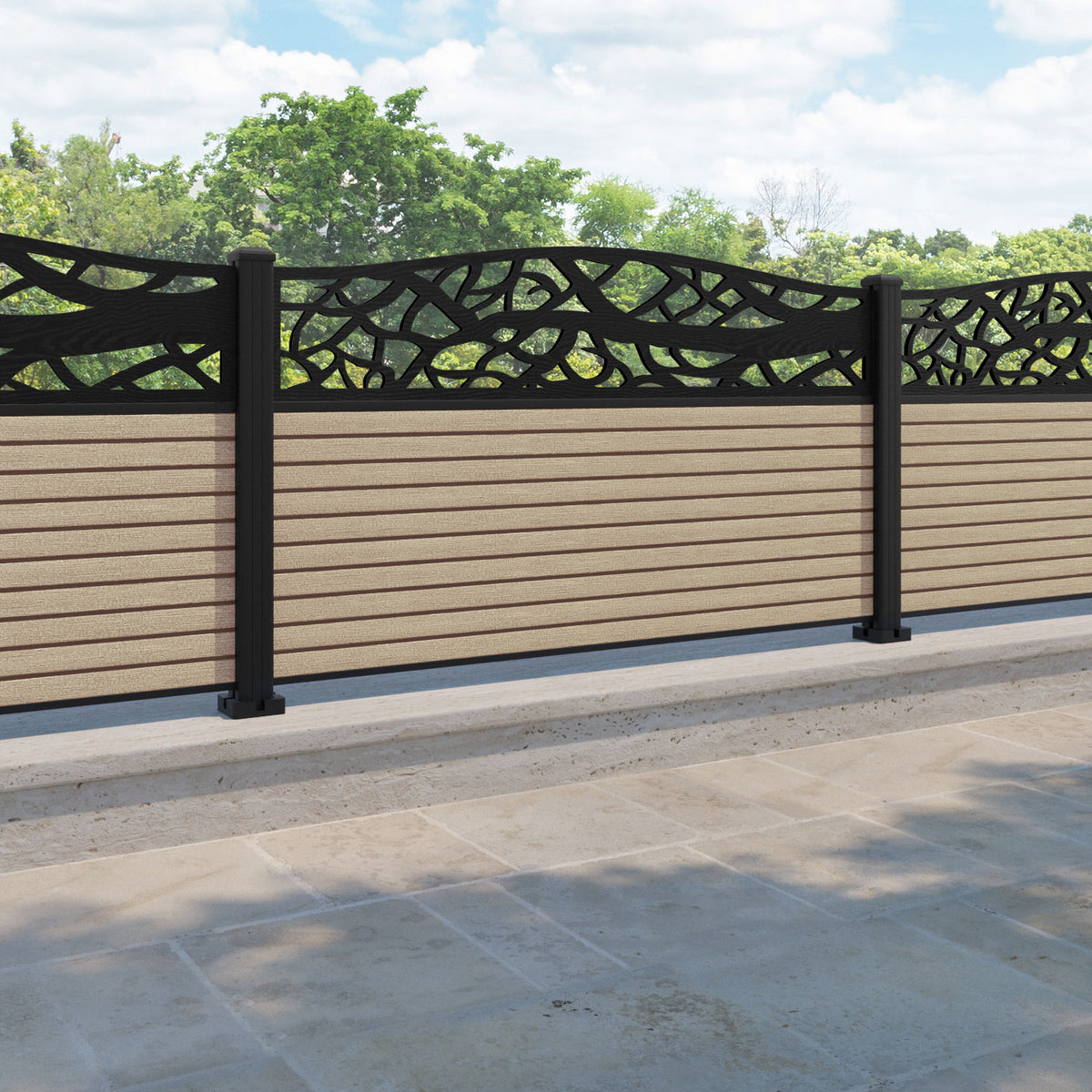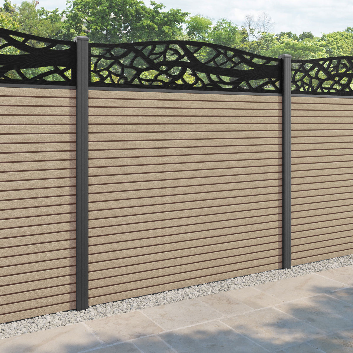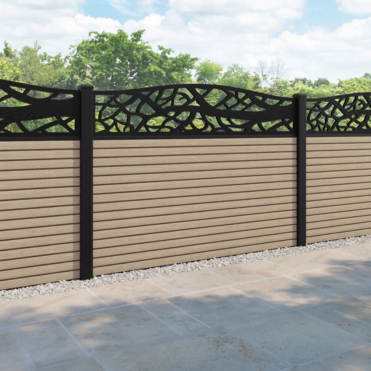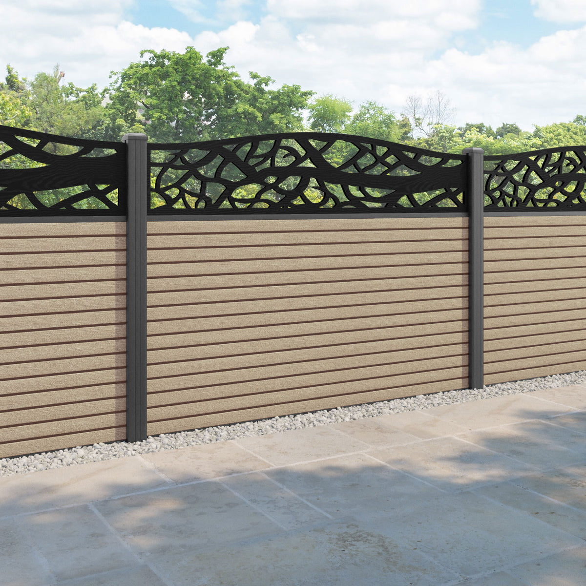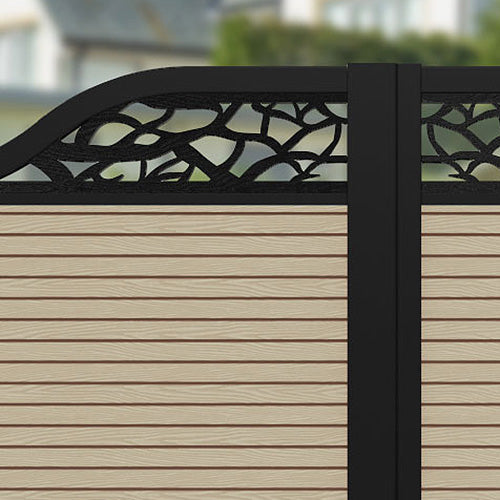 Hudson Twilight Curved Top Fence Panel Light Oak - with our aluminium posts