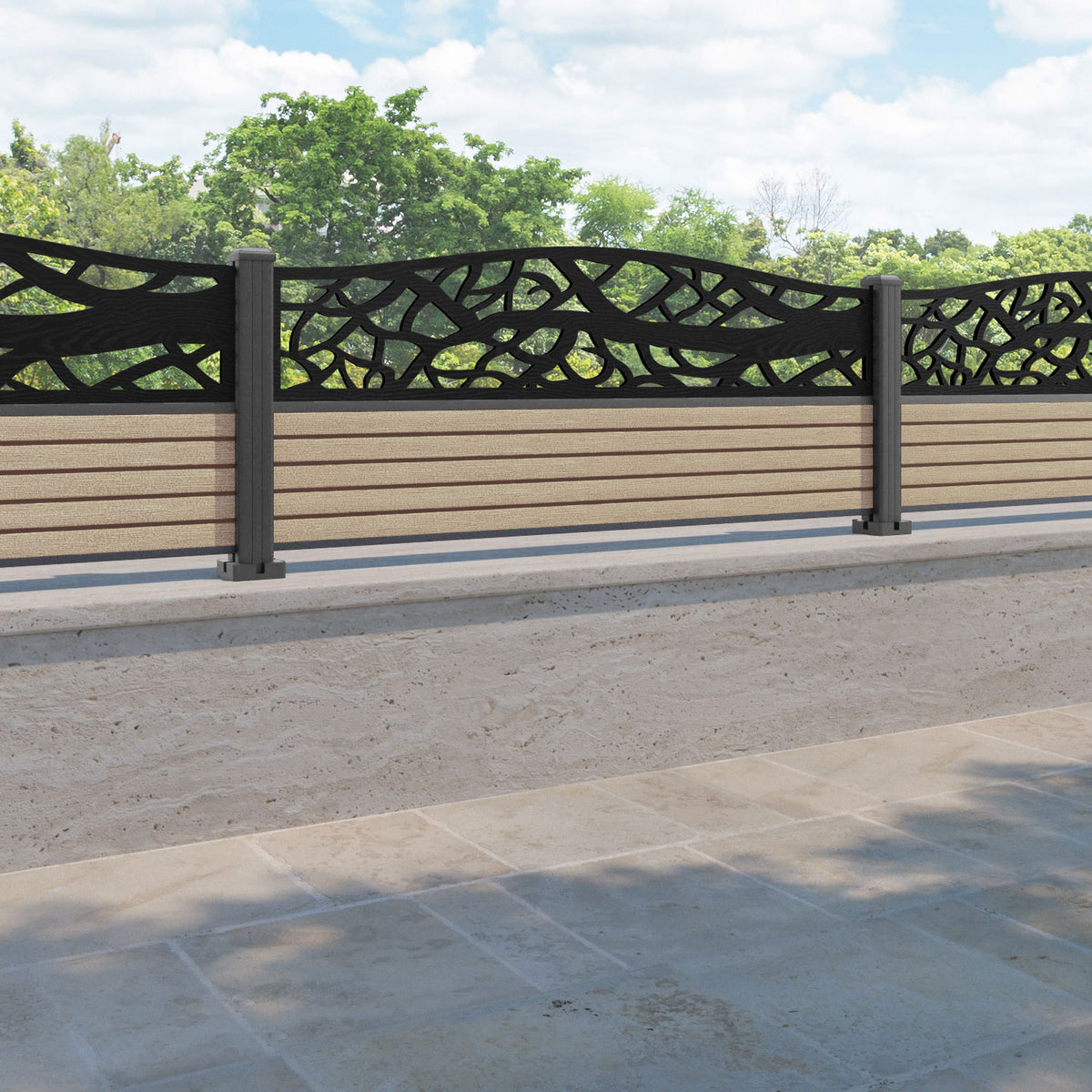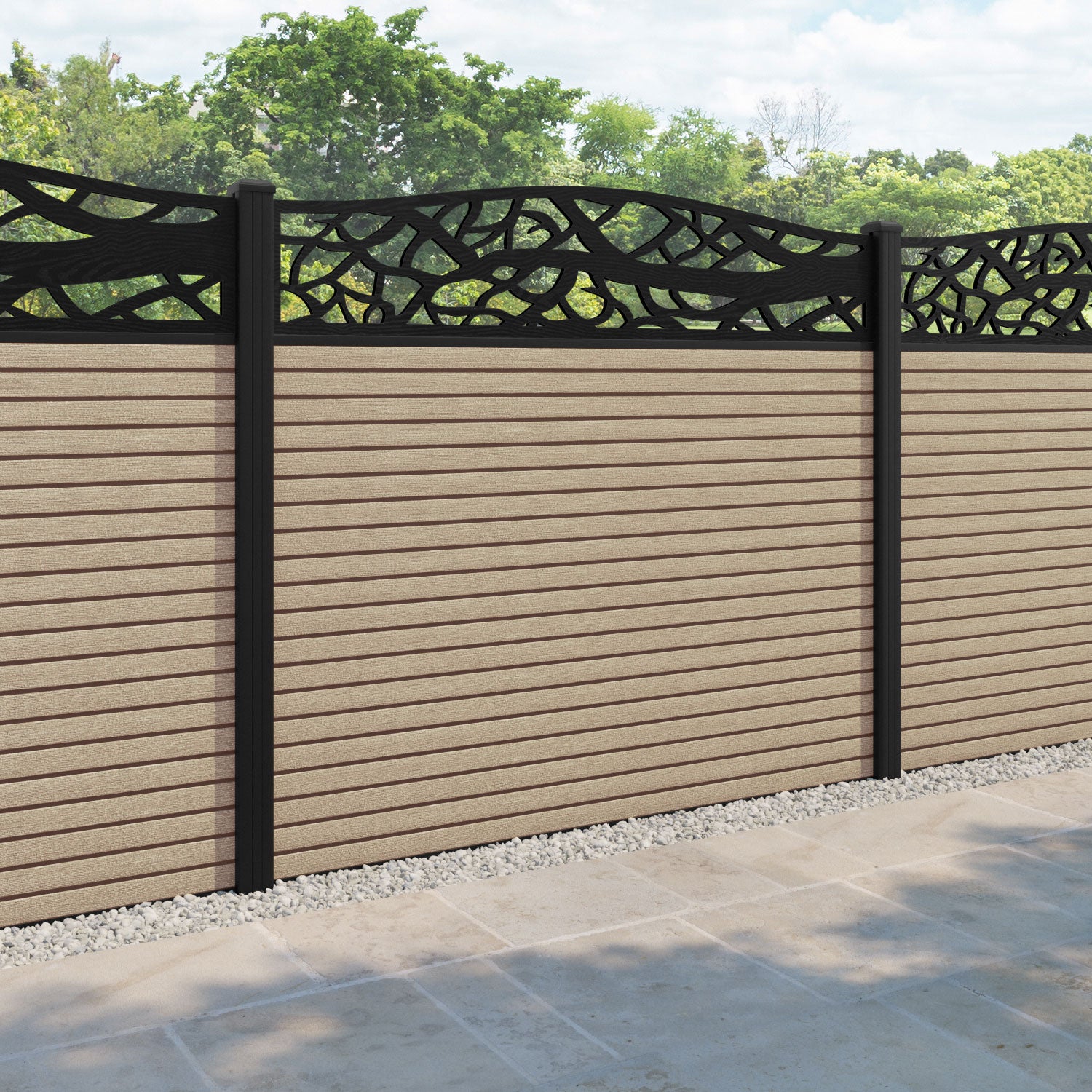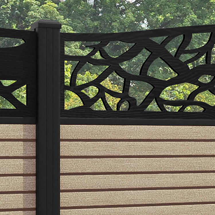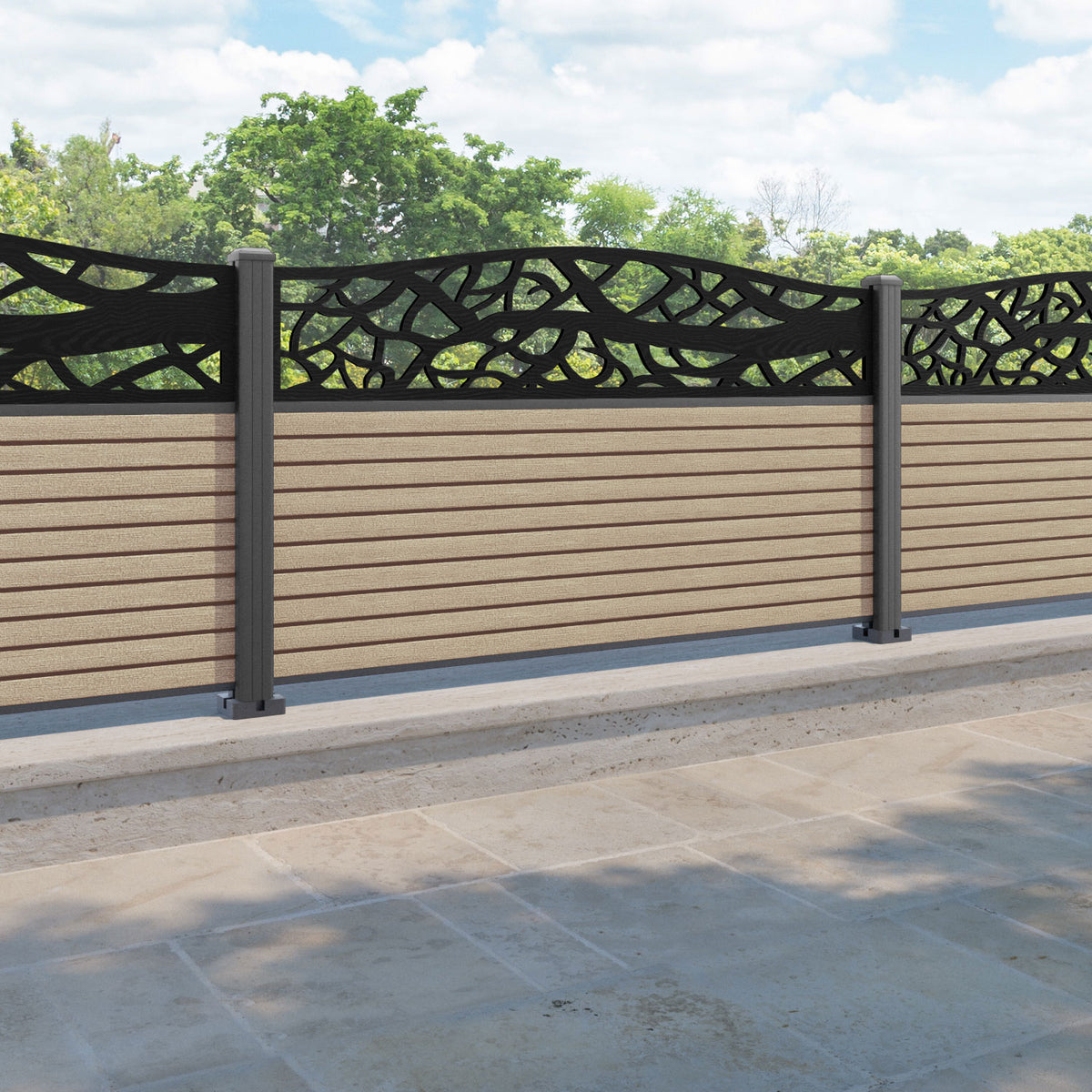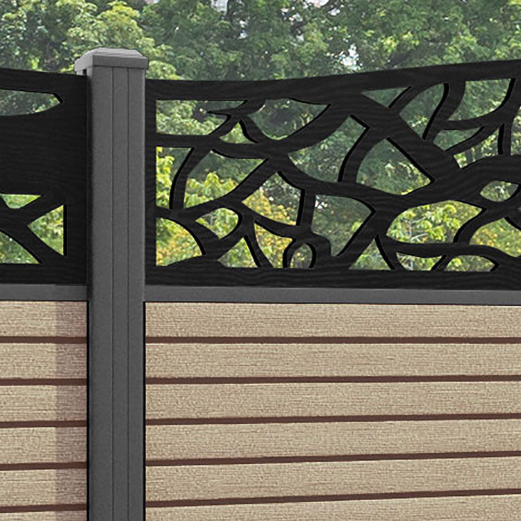 Hudson Twilight Curved Top Fence Panel Light Oak - with our aluminium posts