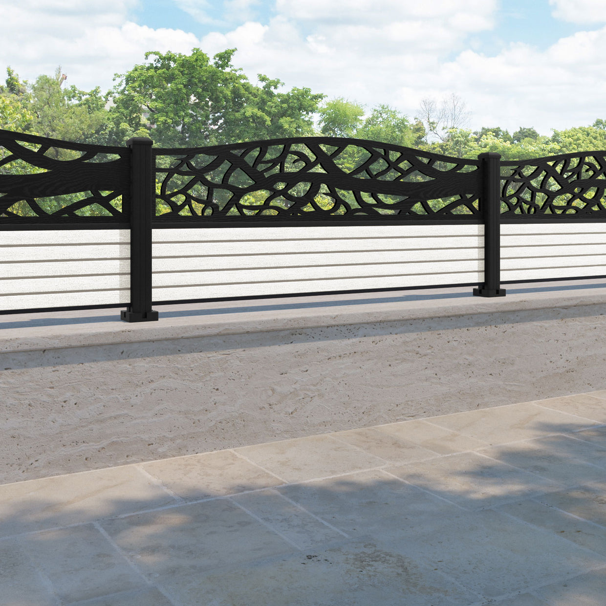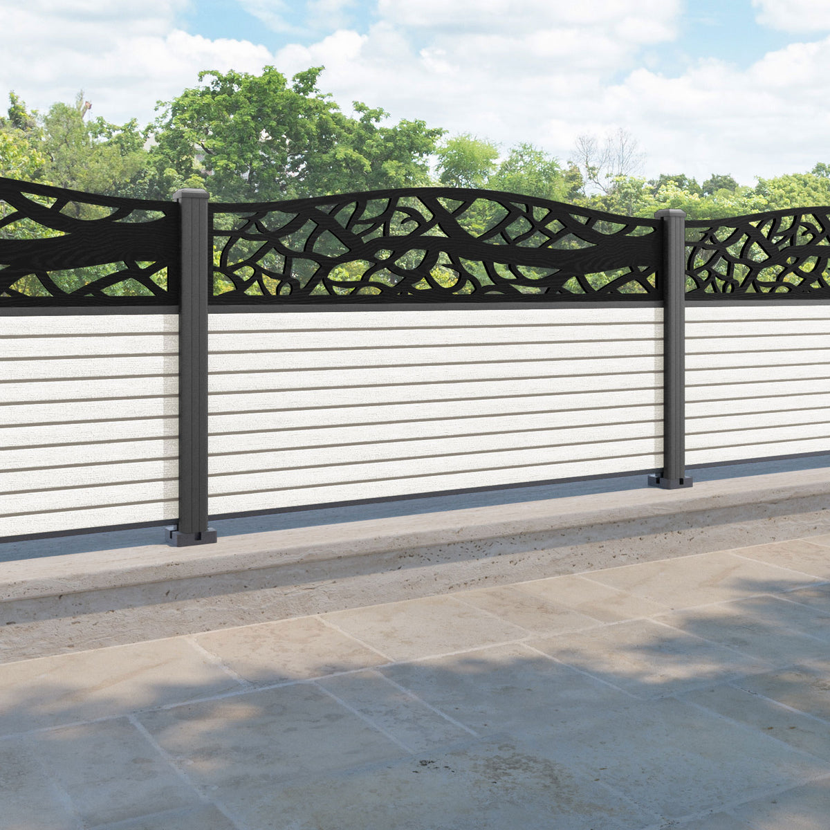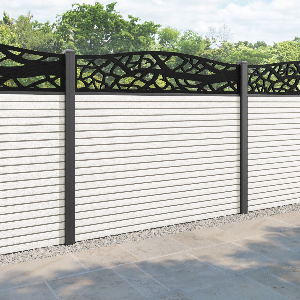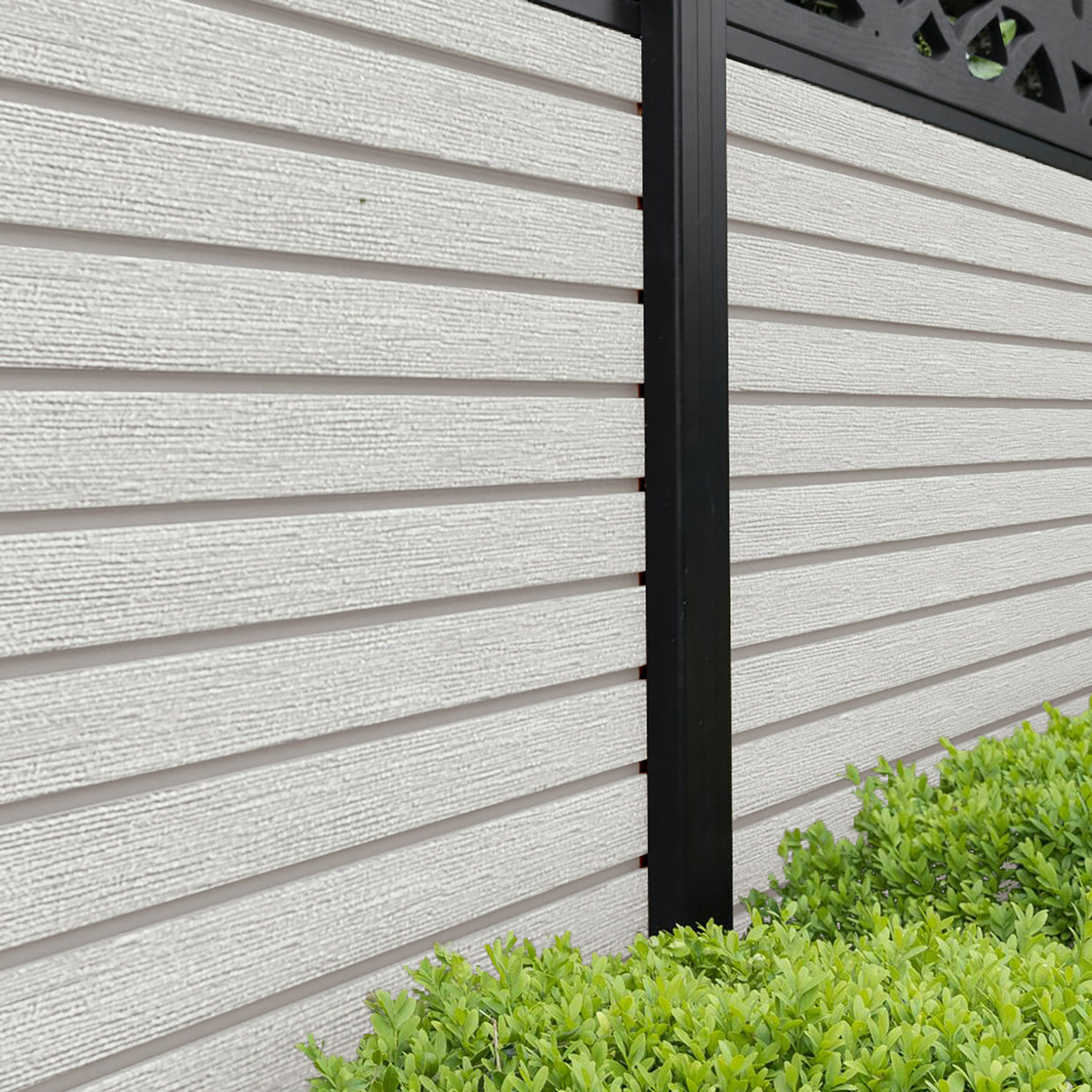 Hudson Twilight Curved Top Fence Panel Light Stone - with our aluminium posts