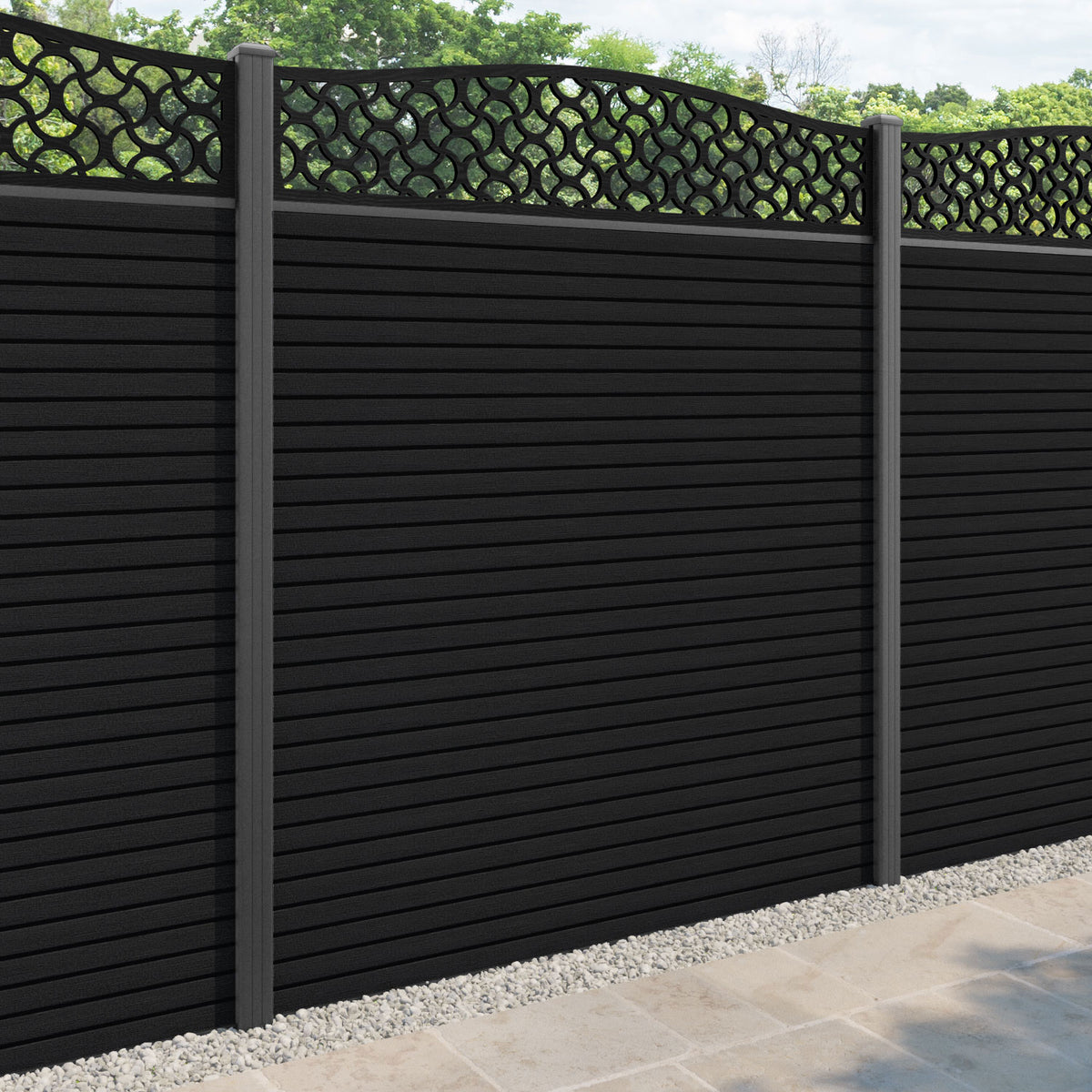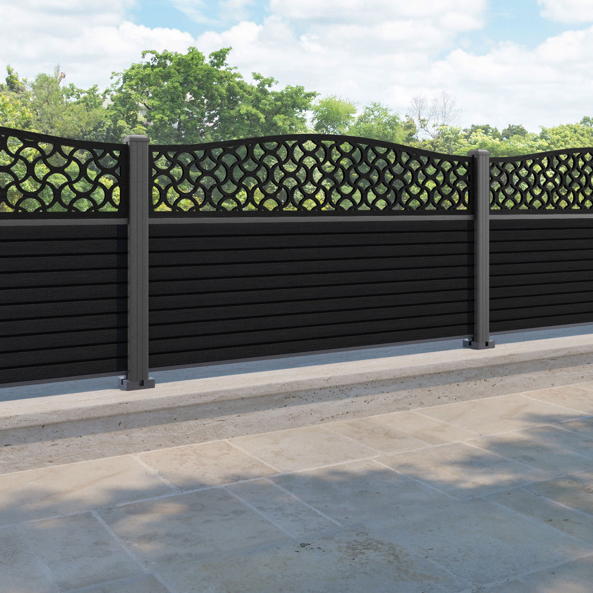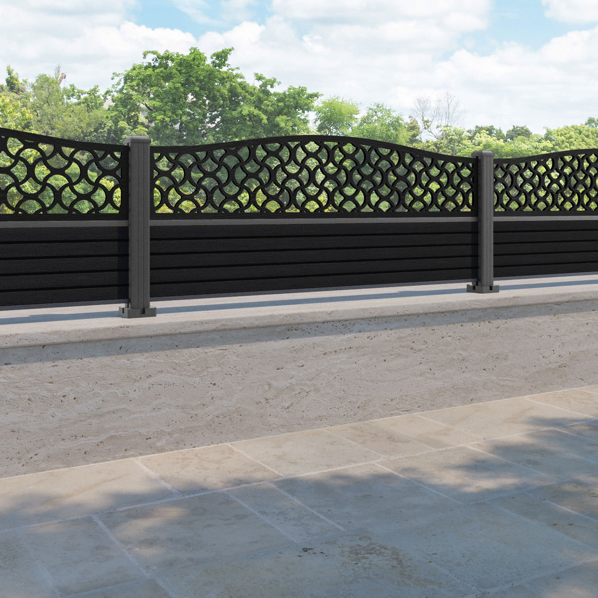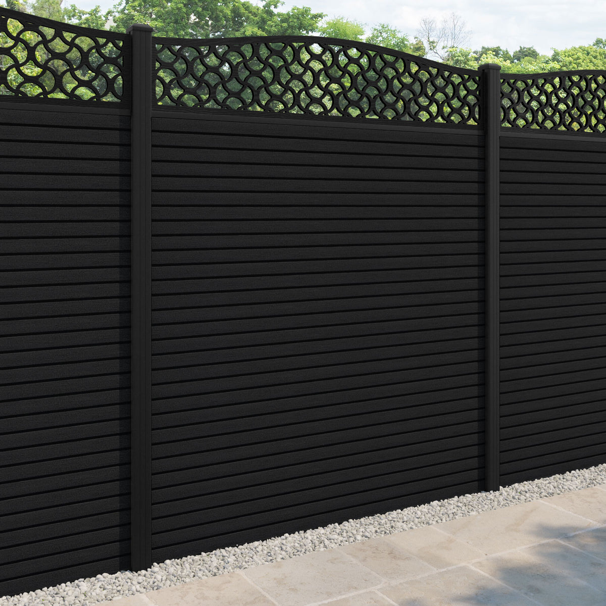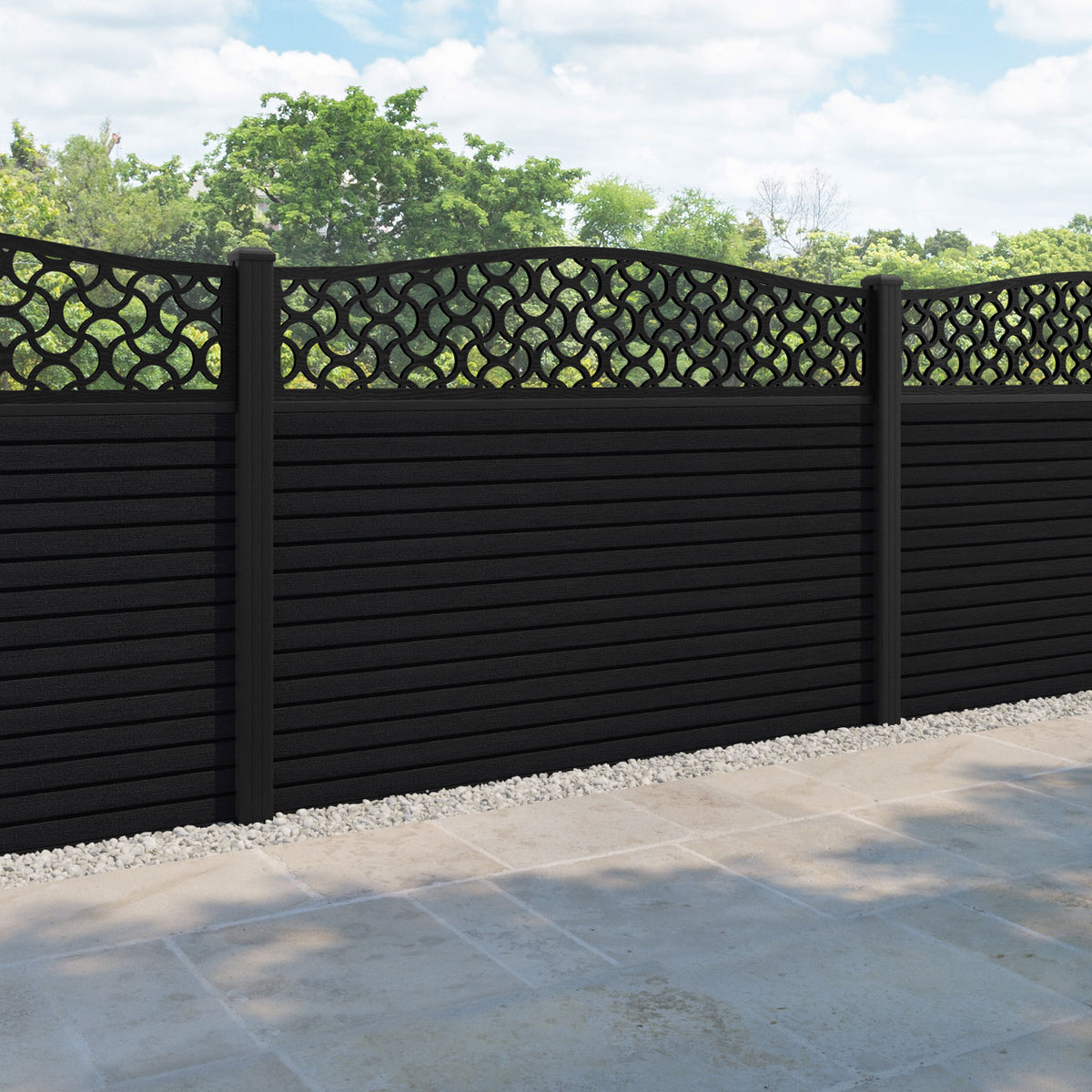 Hudson Vida Curved Top Fence Panel Black - with our aluminium posts