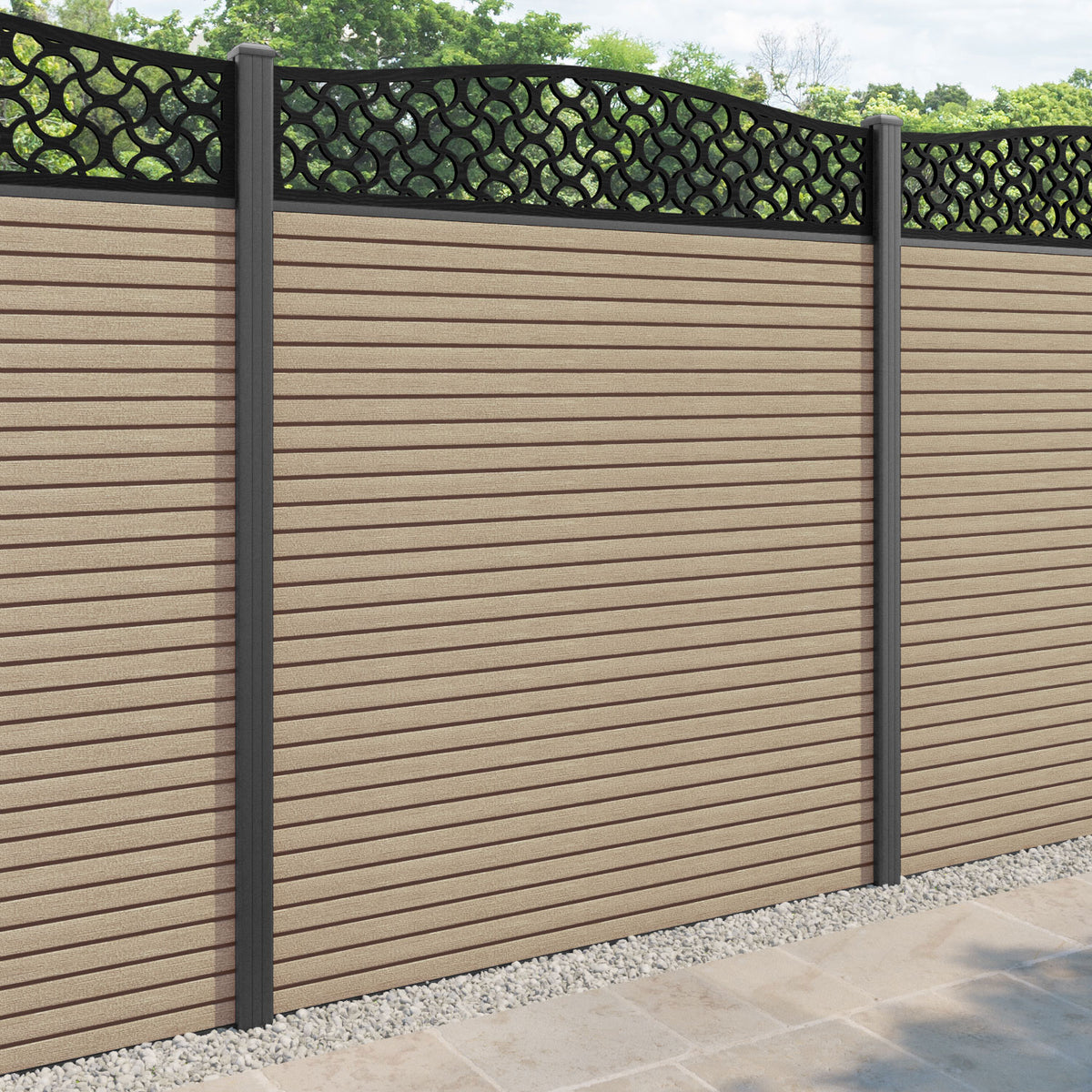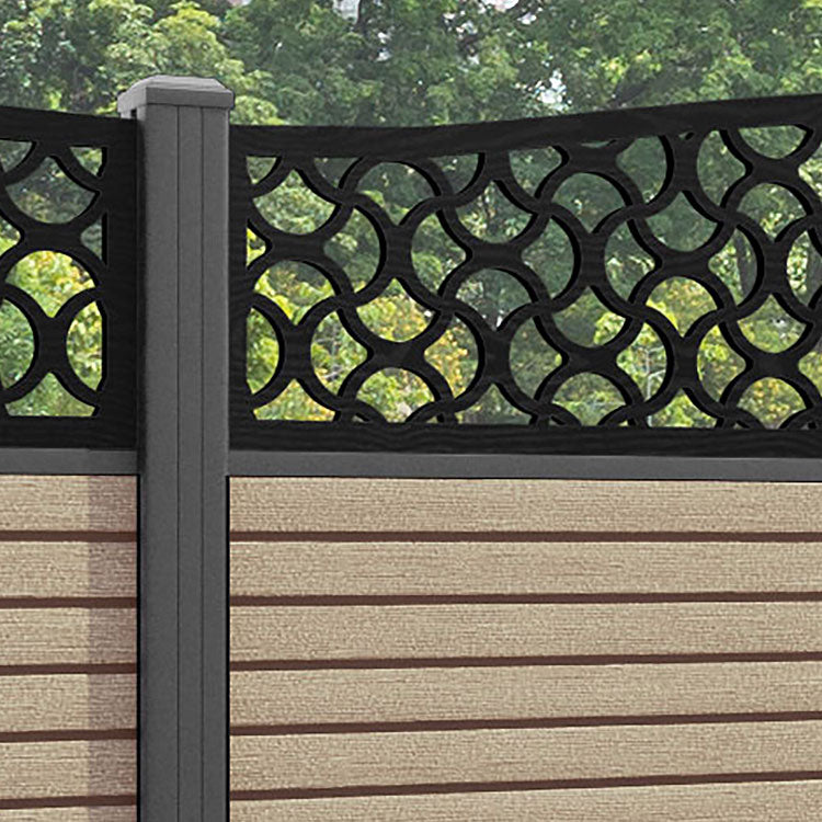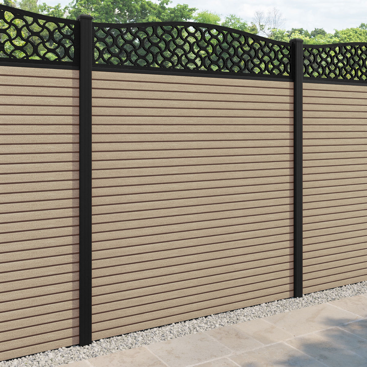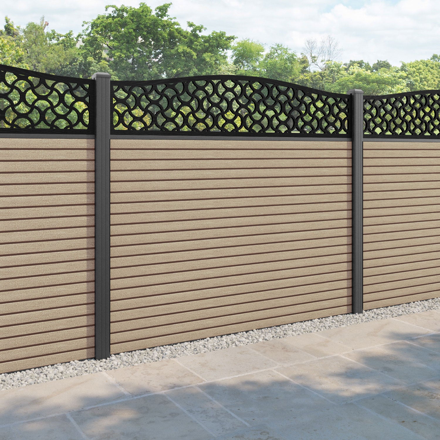 Hudson Vida Curved Top Fence Panel Light Oak - with our aluminium posts