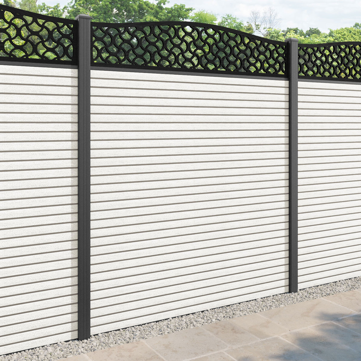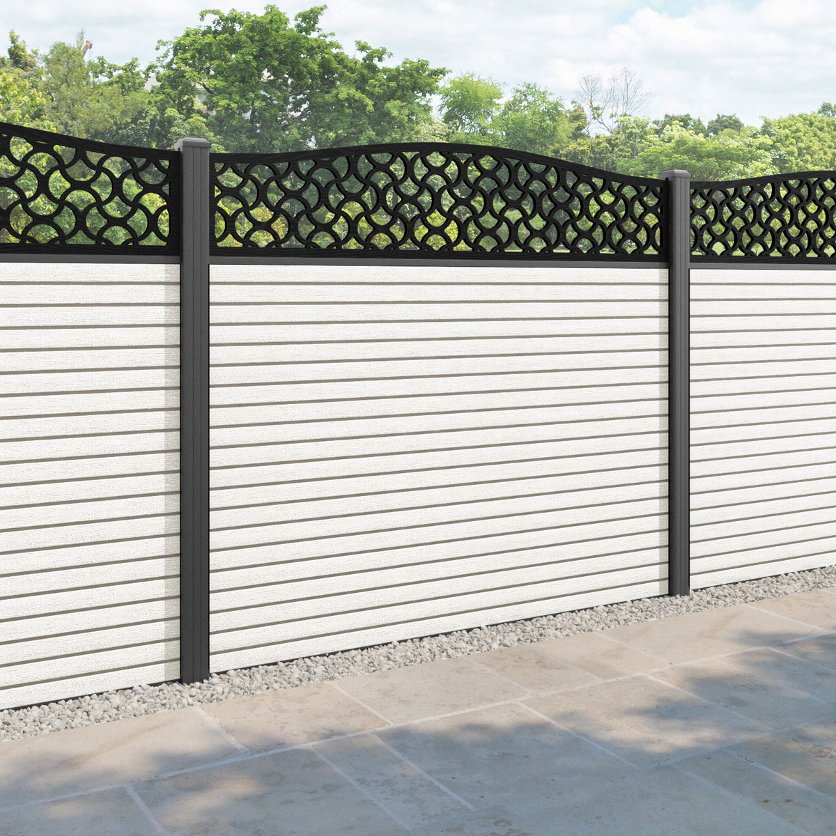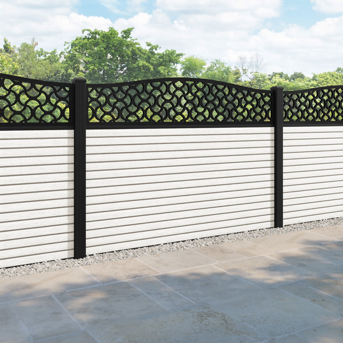 Hudson Vida Curved Top Fence Panel Light Stone - with our aluminium posts