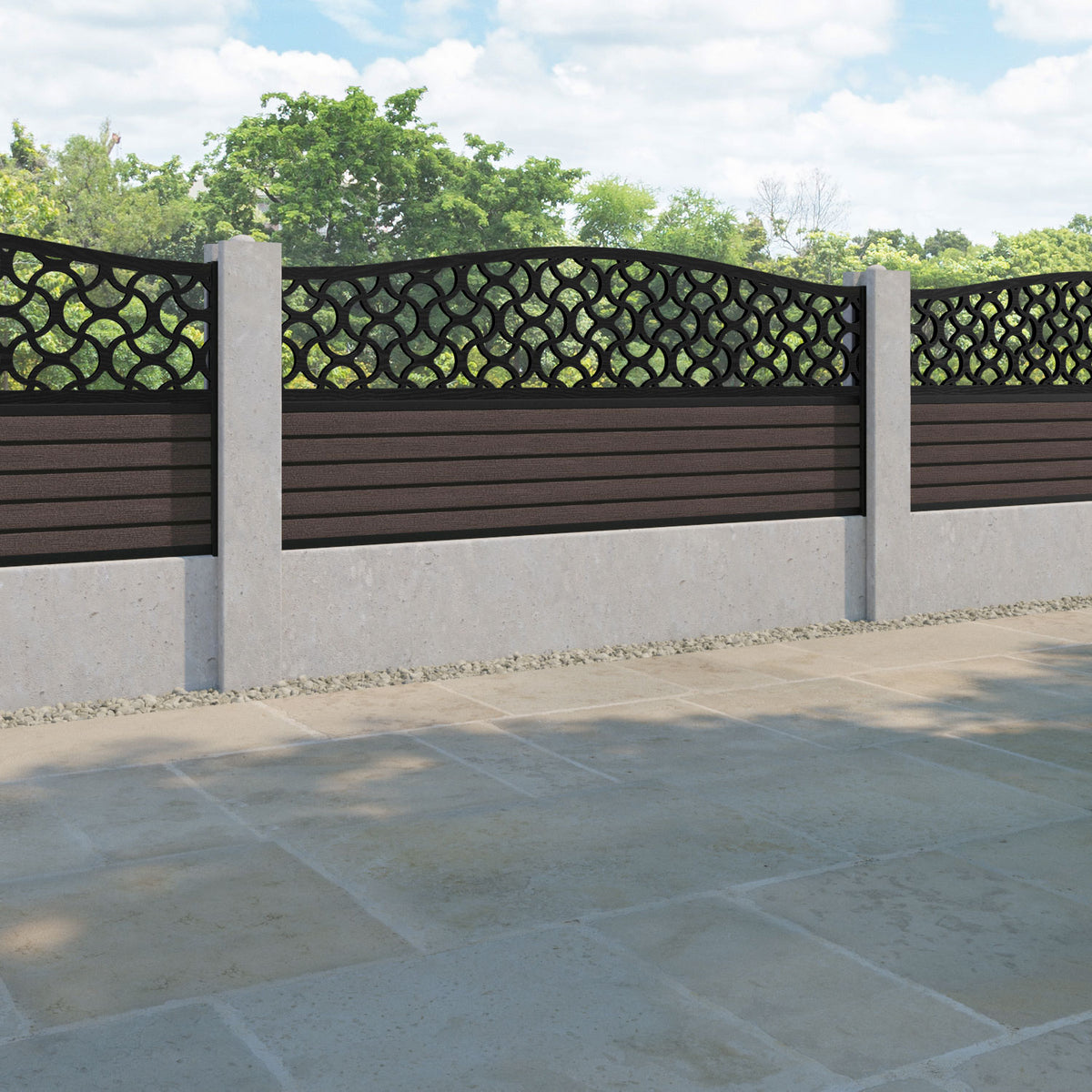 Hudson Vida Curved Top Fence Panel Mid Brown - for existing concrete posts