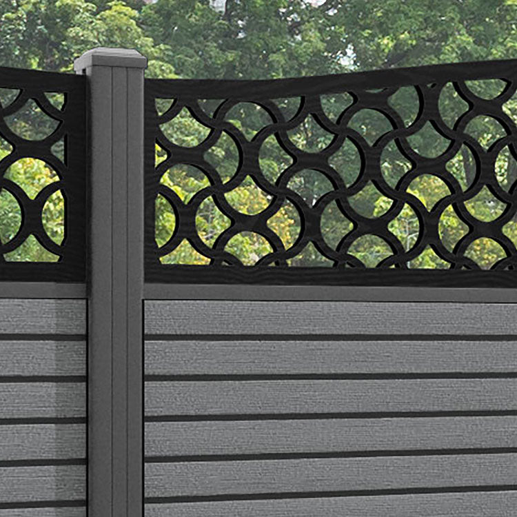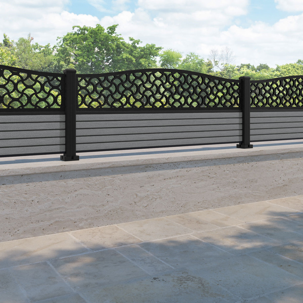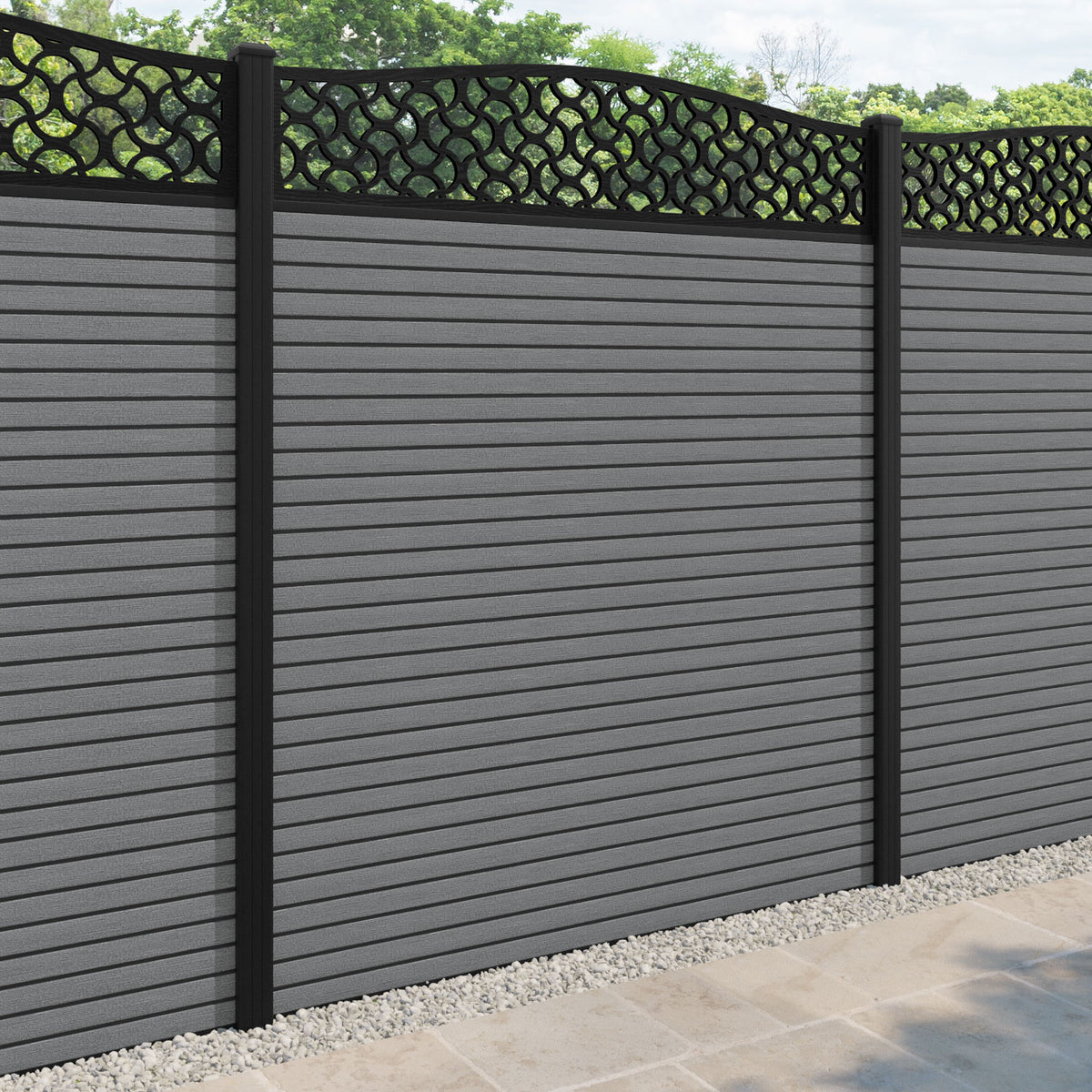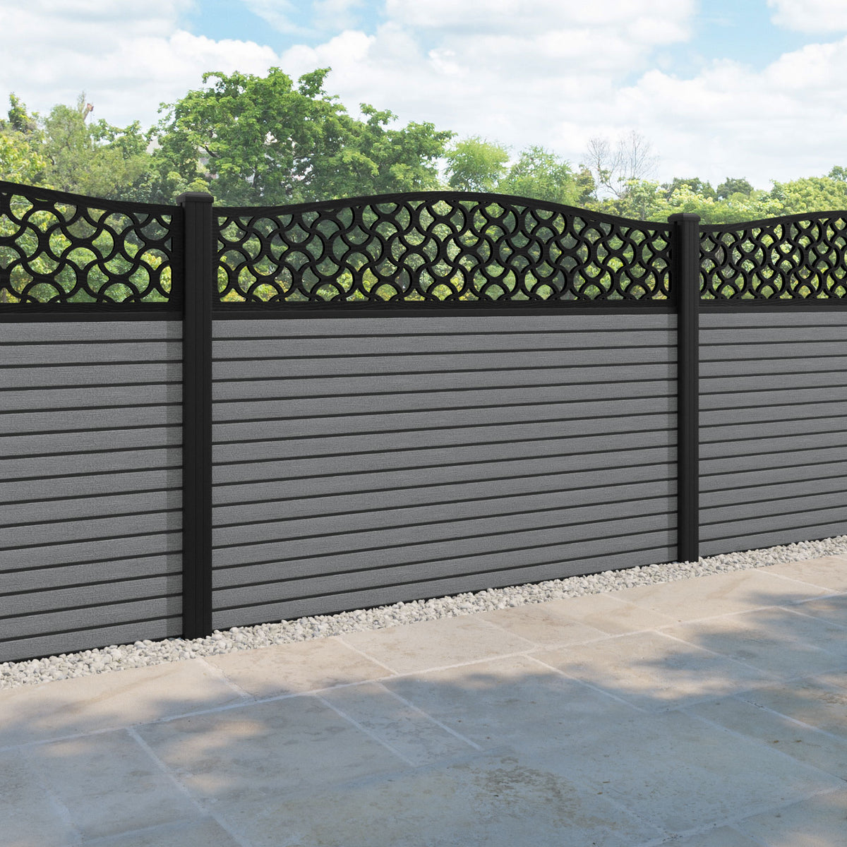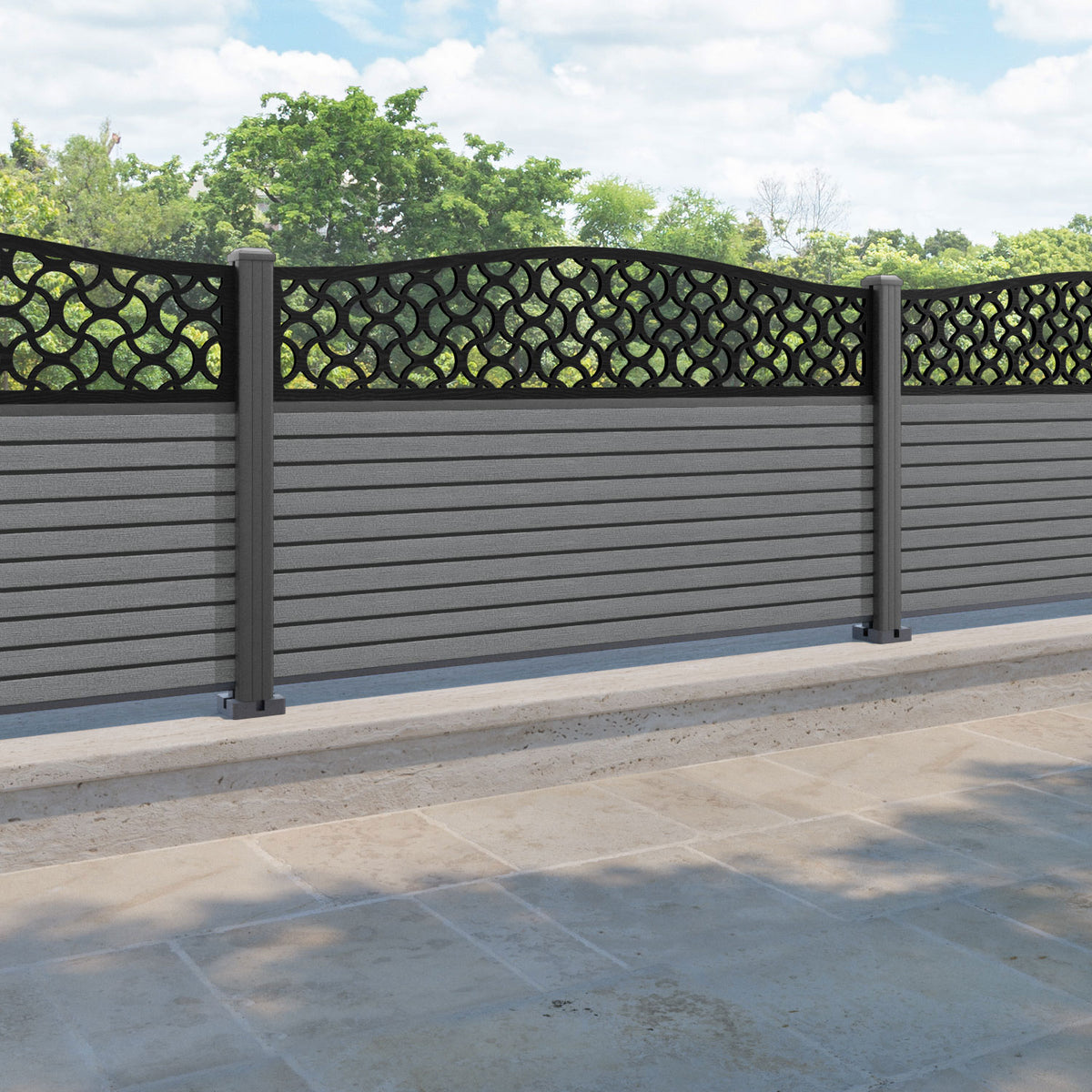 Hudson Vida Curved Top Fence Panel Mid Grey - with our aluminium posts