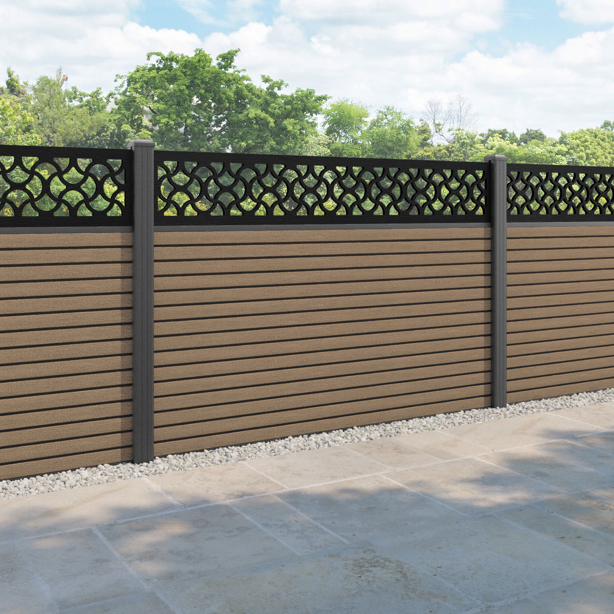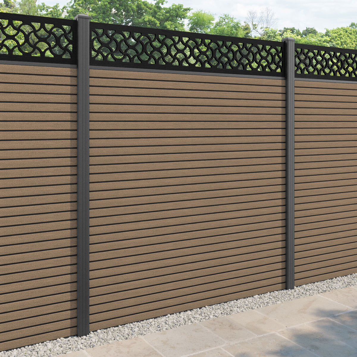 Hudson Vida Fence Panel Teak - with our aluminium posts