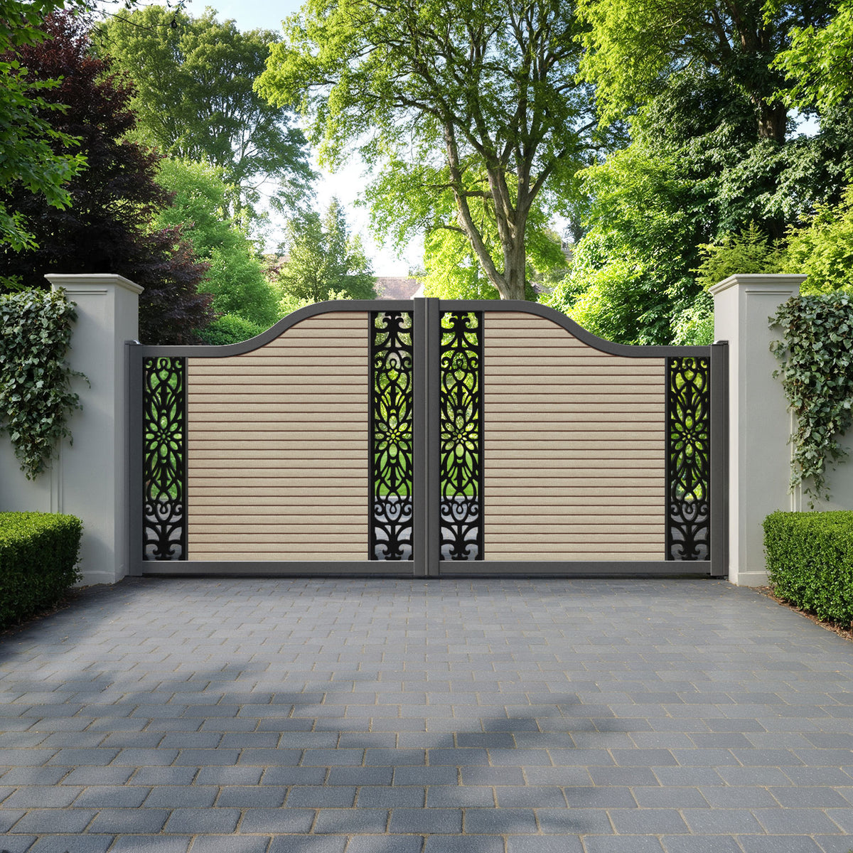 Hudson Windsor Curved Top Driveway Gate Light Oak - Middle & End Screen