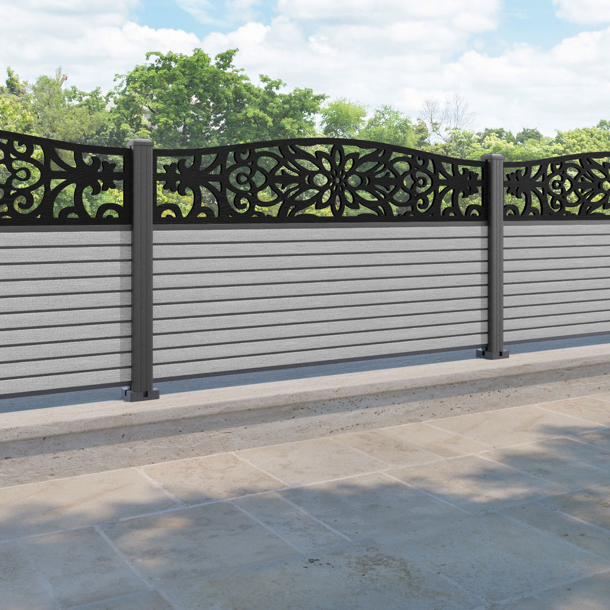 Hudson Windsor Curved Top Fence Panel Light Grey - with our aluminium posts