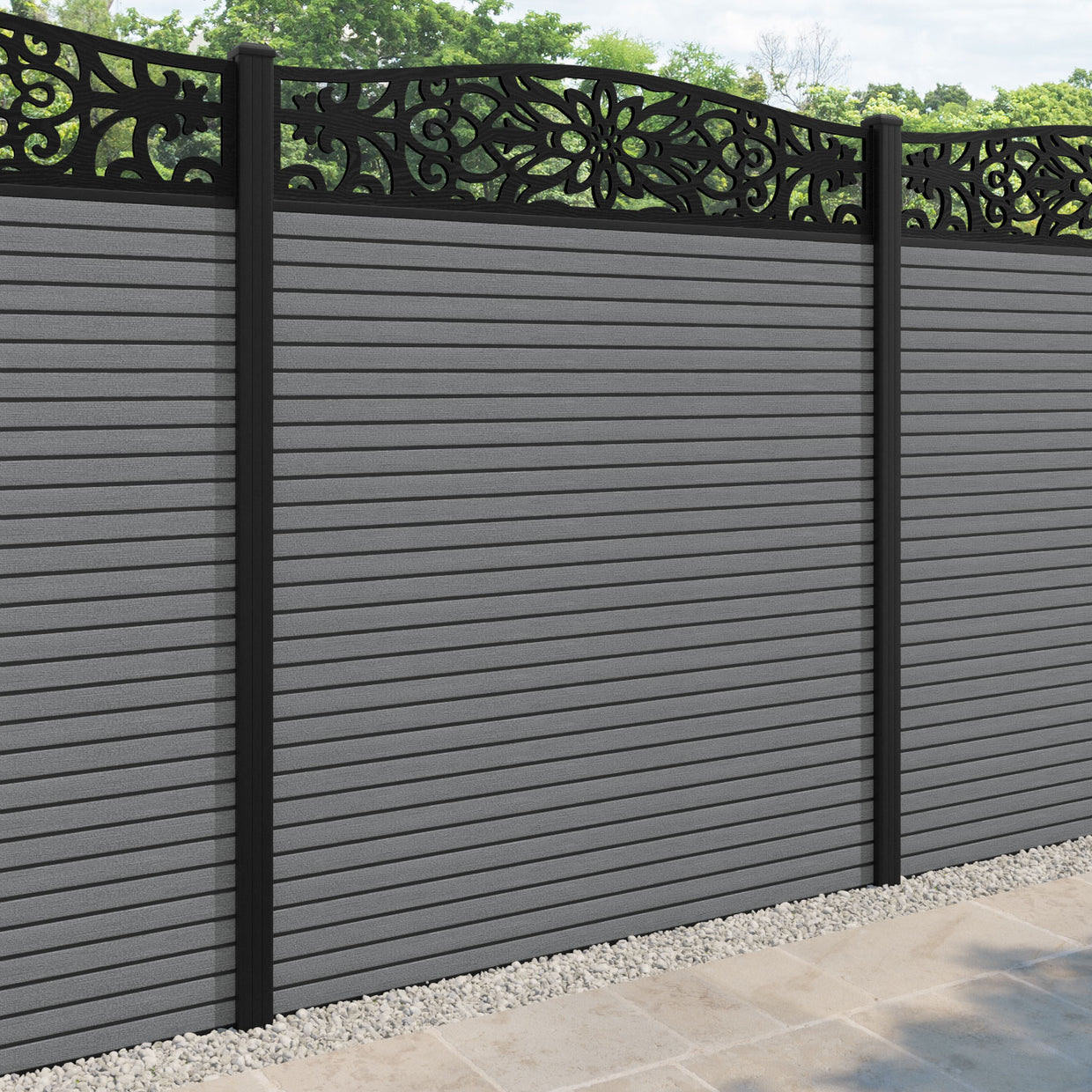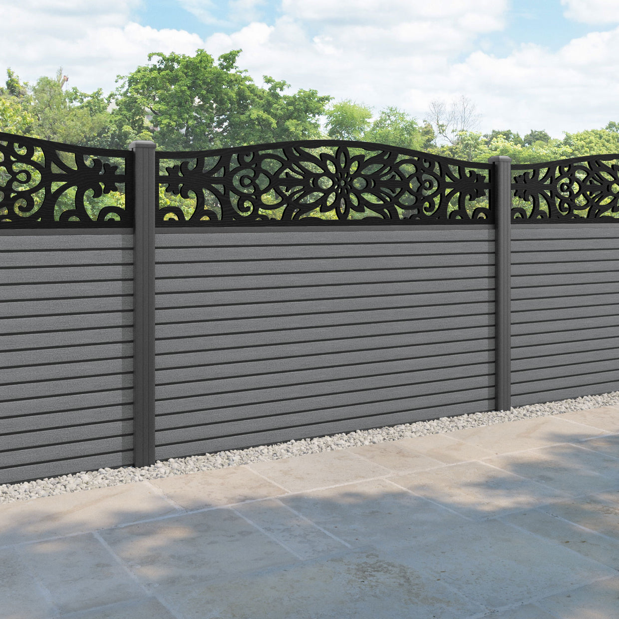 Hudson Windsor Curved Top Fence Panel Mid Grey - with our aluminium posts