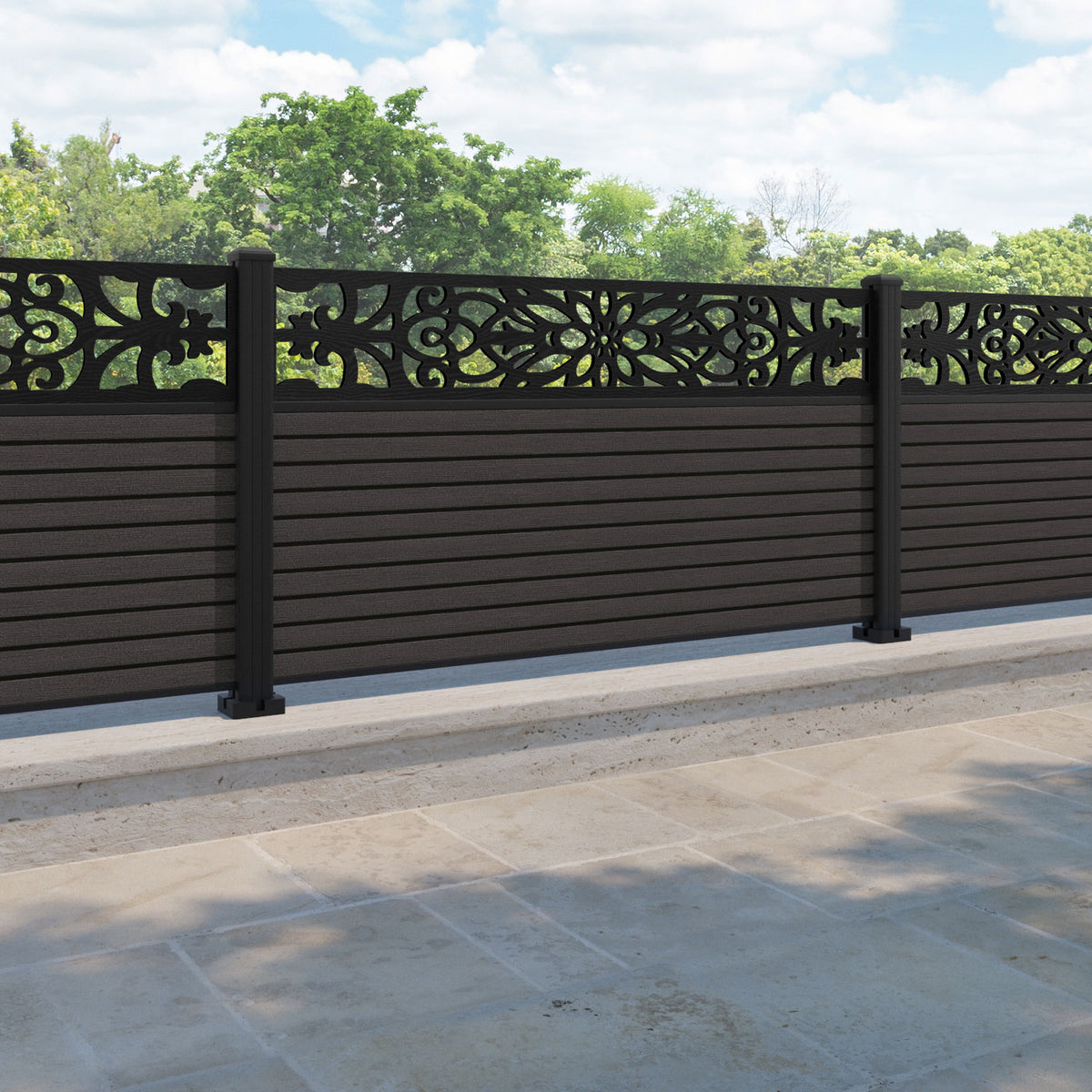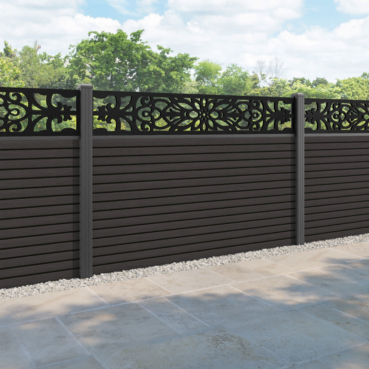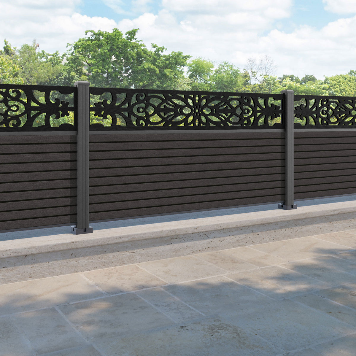Hudson Windsor Fence Panel Dark Oak - with our aluminium posts
