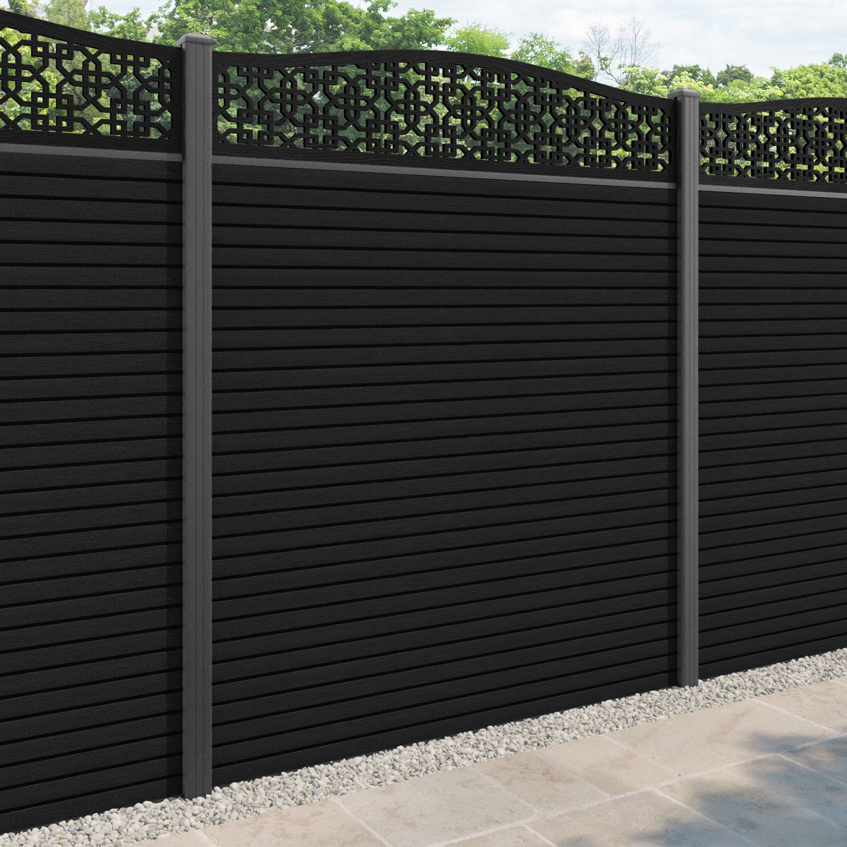 Hudson Zaria Curved Top Fence Panel Black - with our aluminium posts