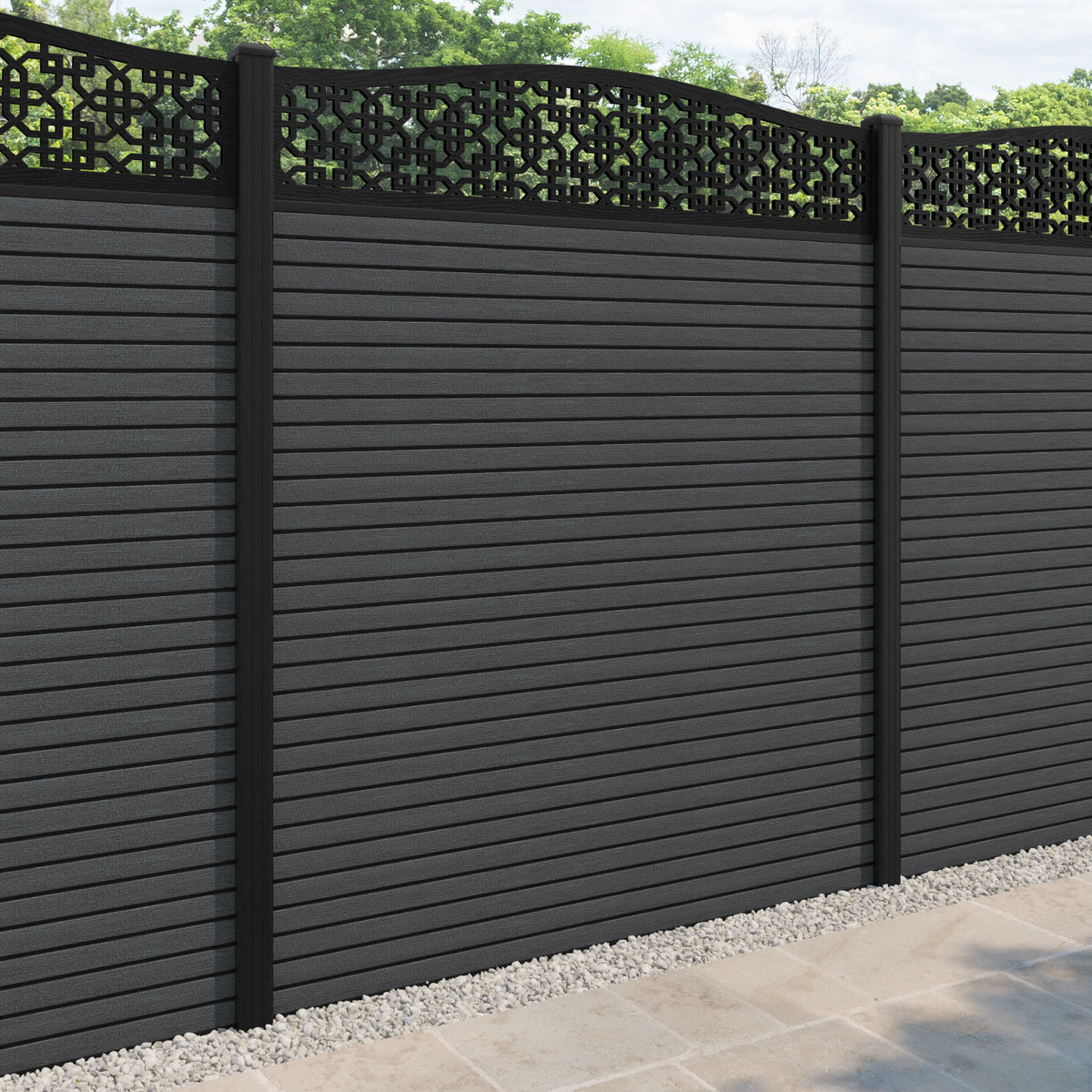 Hudson Zaria Curved Top Fence Panel Dark Grey - with our aluminium posts