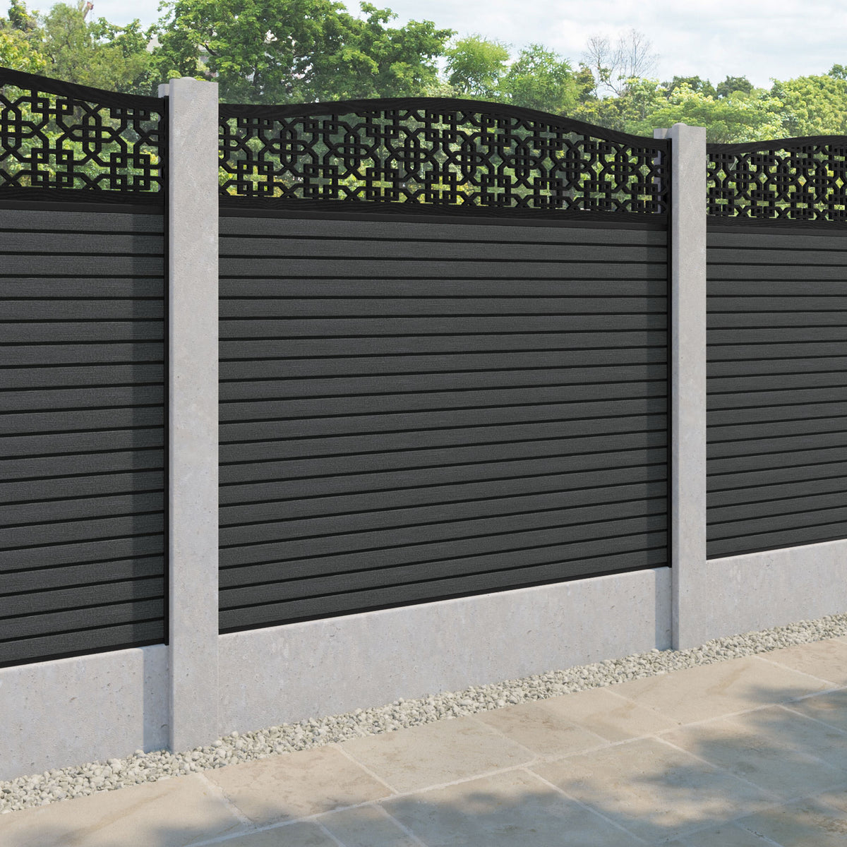 Hudson Zaria Curved Top Fence Panel Dark Grey - for existing concrete posts