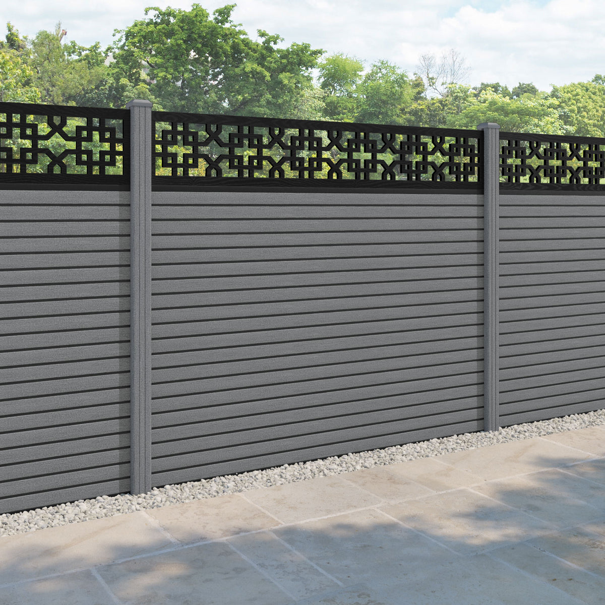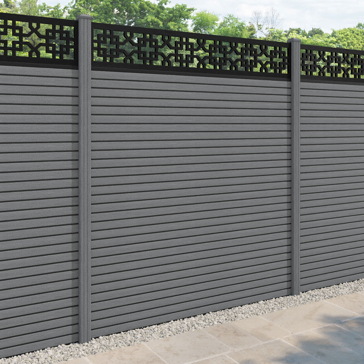 Hudson Zaria Fence Panel Mid Grey - with our composite posts