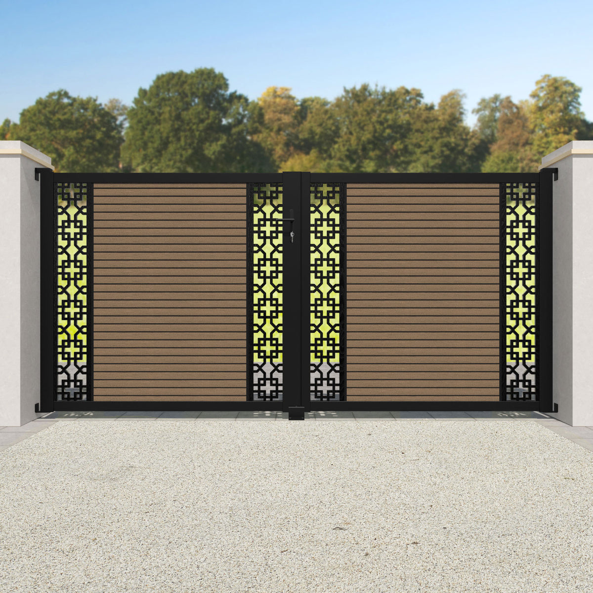 Hudson Zaria Straight Top Driveway Gate Teak - Middle & End Screen