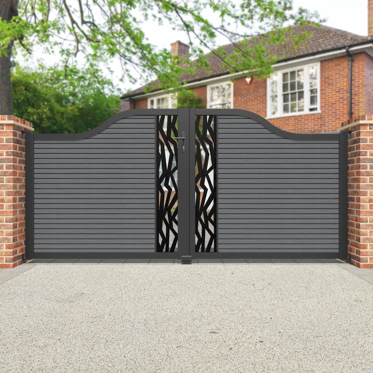 Hudson Zenith Curved Top Driveway Gate Mid Grey - Middle Screen