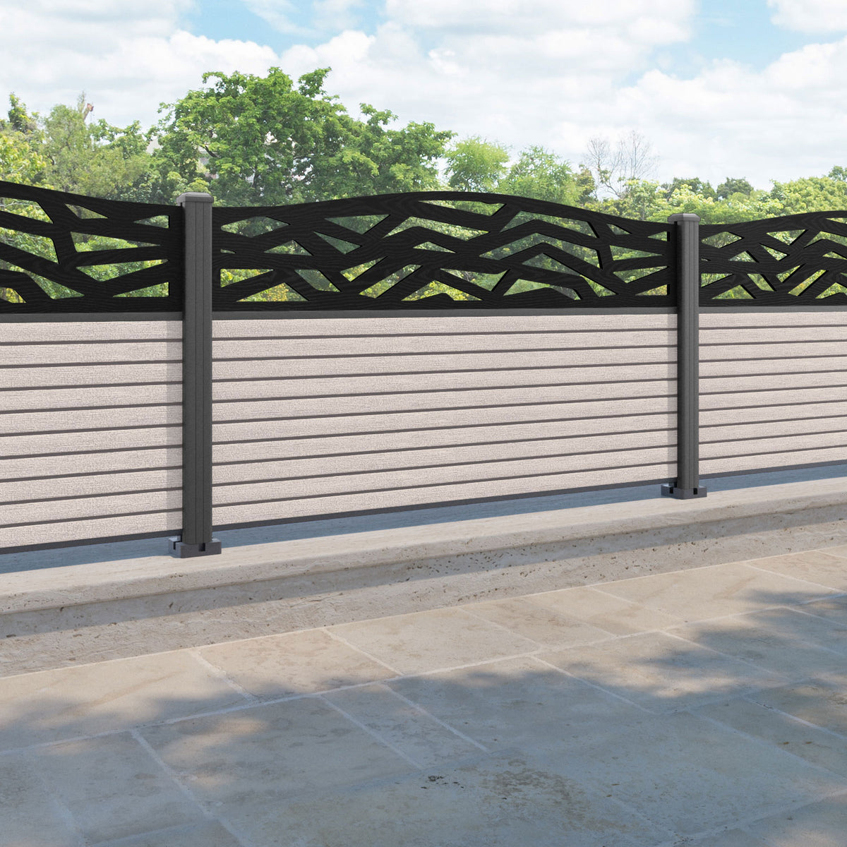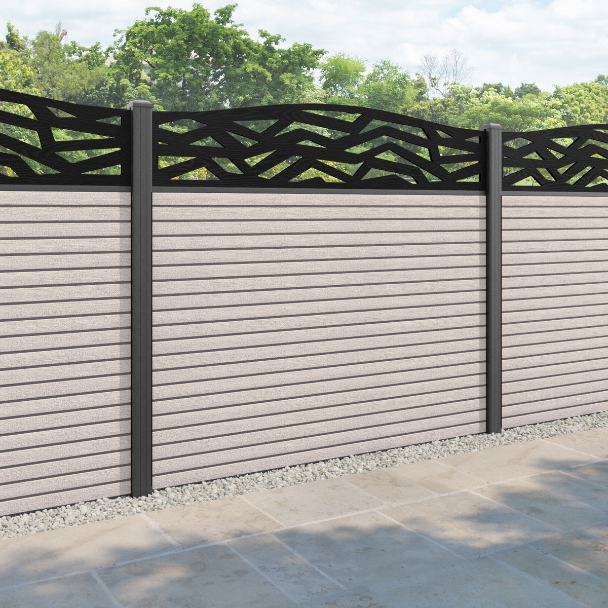 Hudson Zenith Curved Top Fence Panel Mid Stone - with our aluminium posts