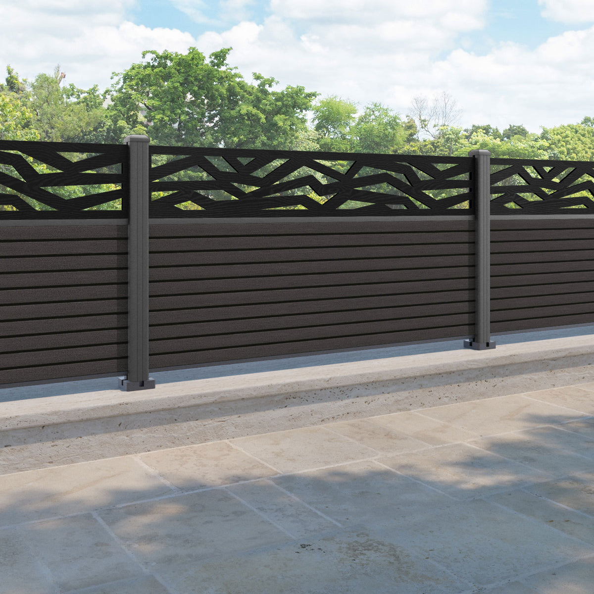 Hudson Zenith Fence Panel Dark Oak - with our aluminium posts