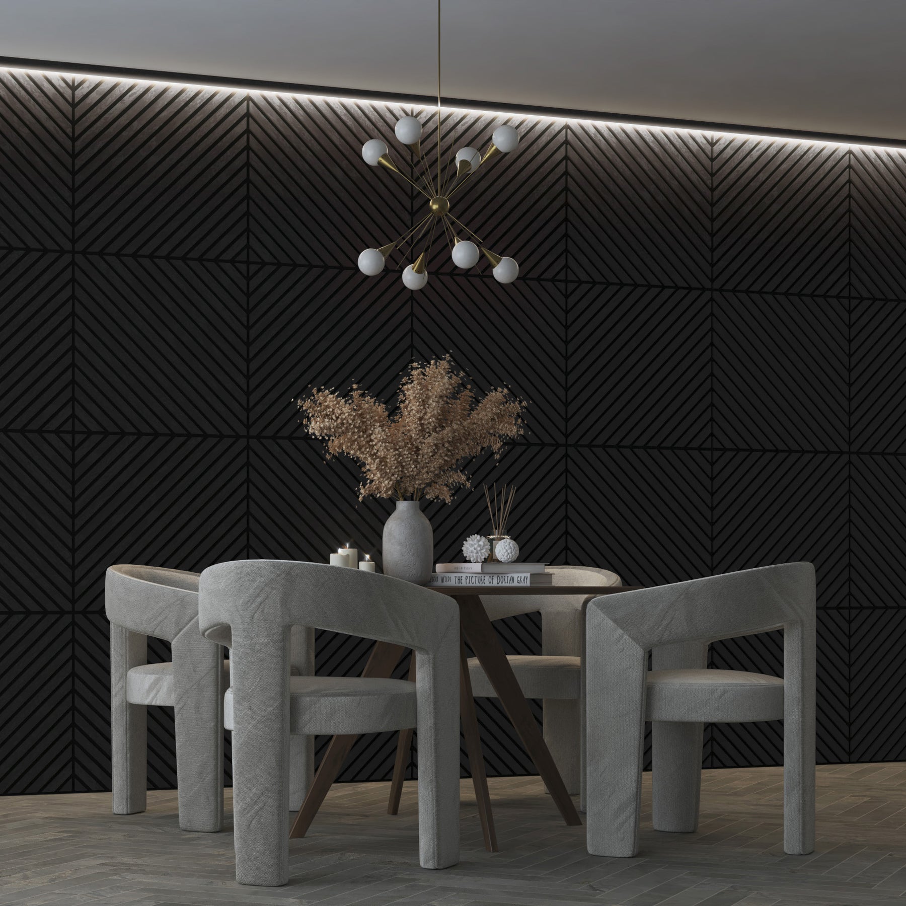 InsuSlat™ Angled Wall Panel Black - H60cm x W60cm (Pack of 4) = H240cm x W60cm