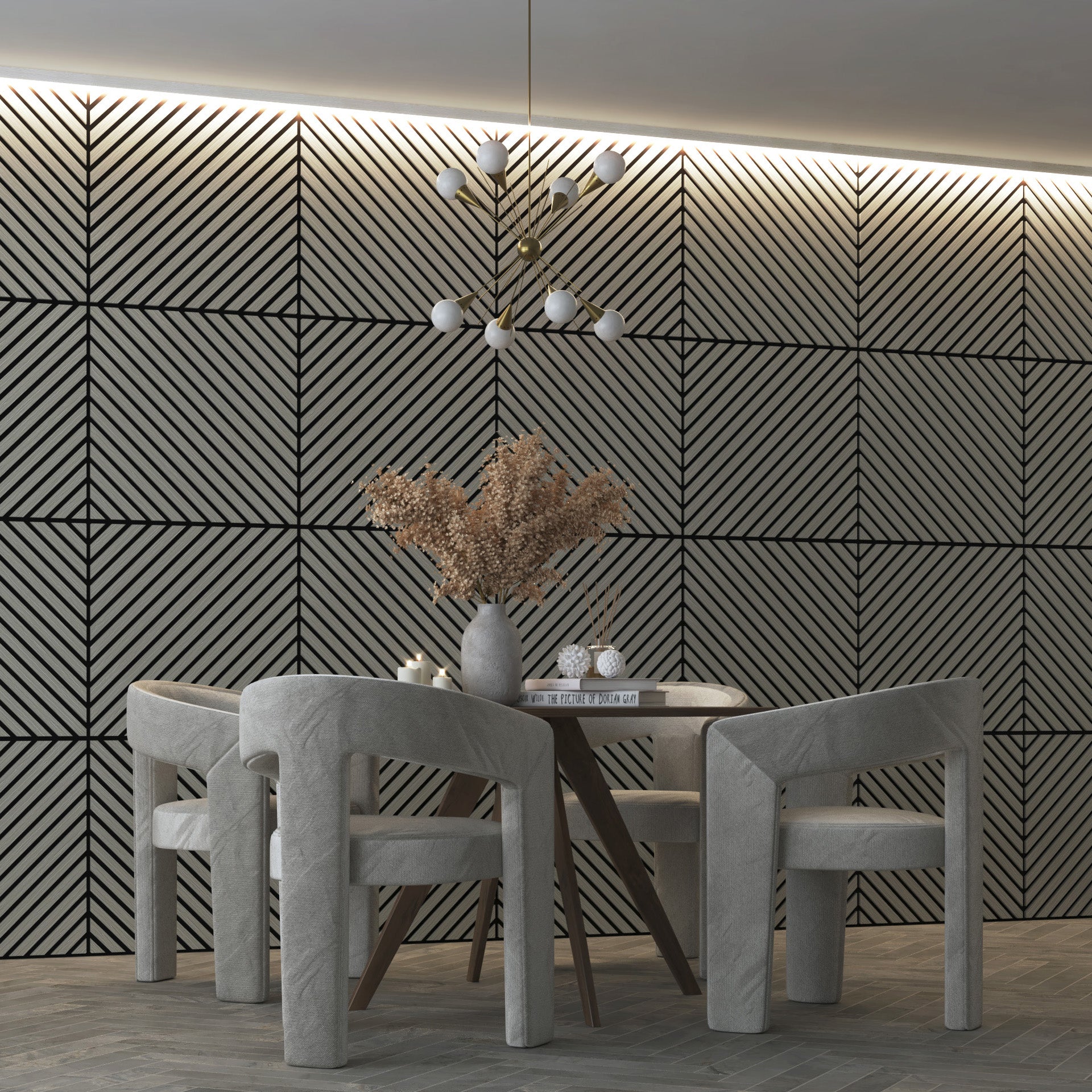 Beyond their aesthetic appeal, our InsuSlat™ panels are engineered to enhance your home's insulation, helping to maintain a comfortable temperature year-round. Additionally, they are designed to reduce sound reverberation, creating a quieter, more serene environment.