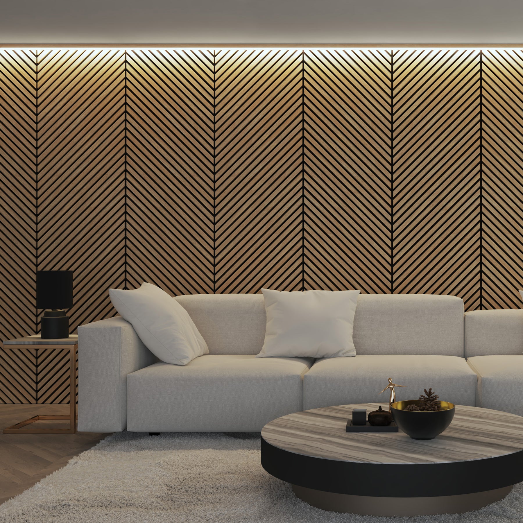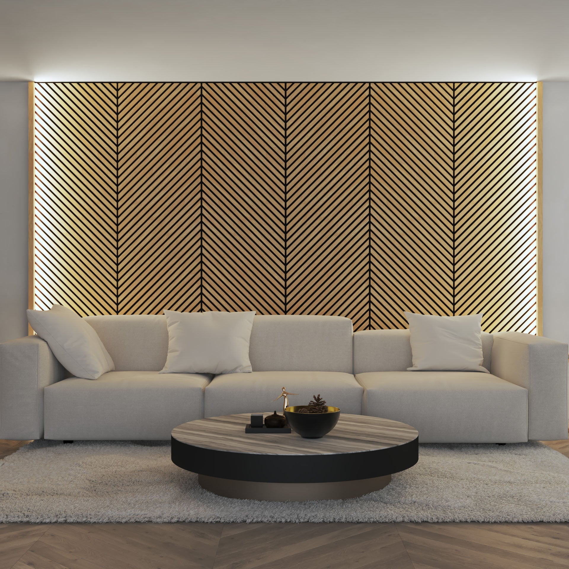 Beyond their aesthetic appeal, our InsuSlat™ panels are engineered to enhance your home's insulation, helping to maintain a comfortable temperature year-round. Additionally, they are designed to reduce sound reverberation, creating a quieter, more serene environment.